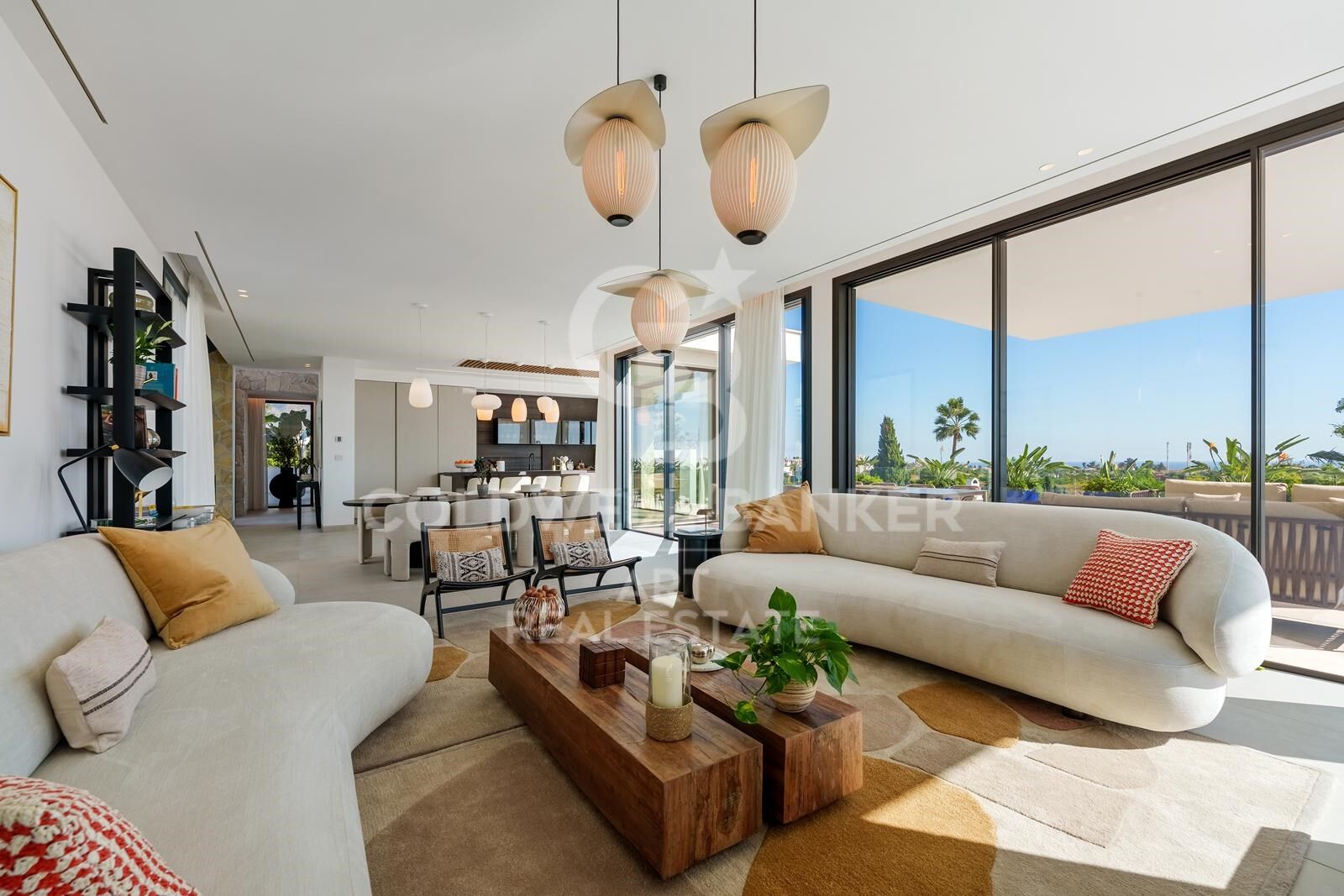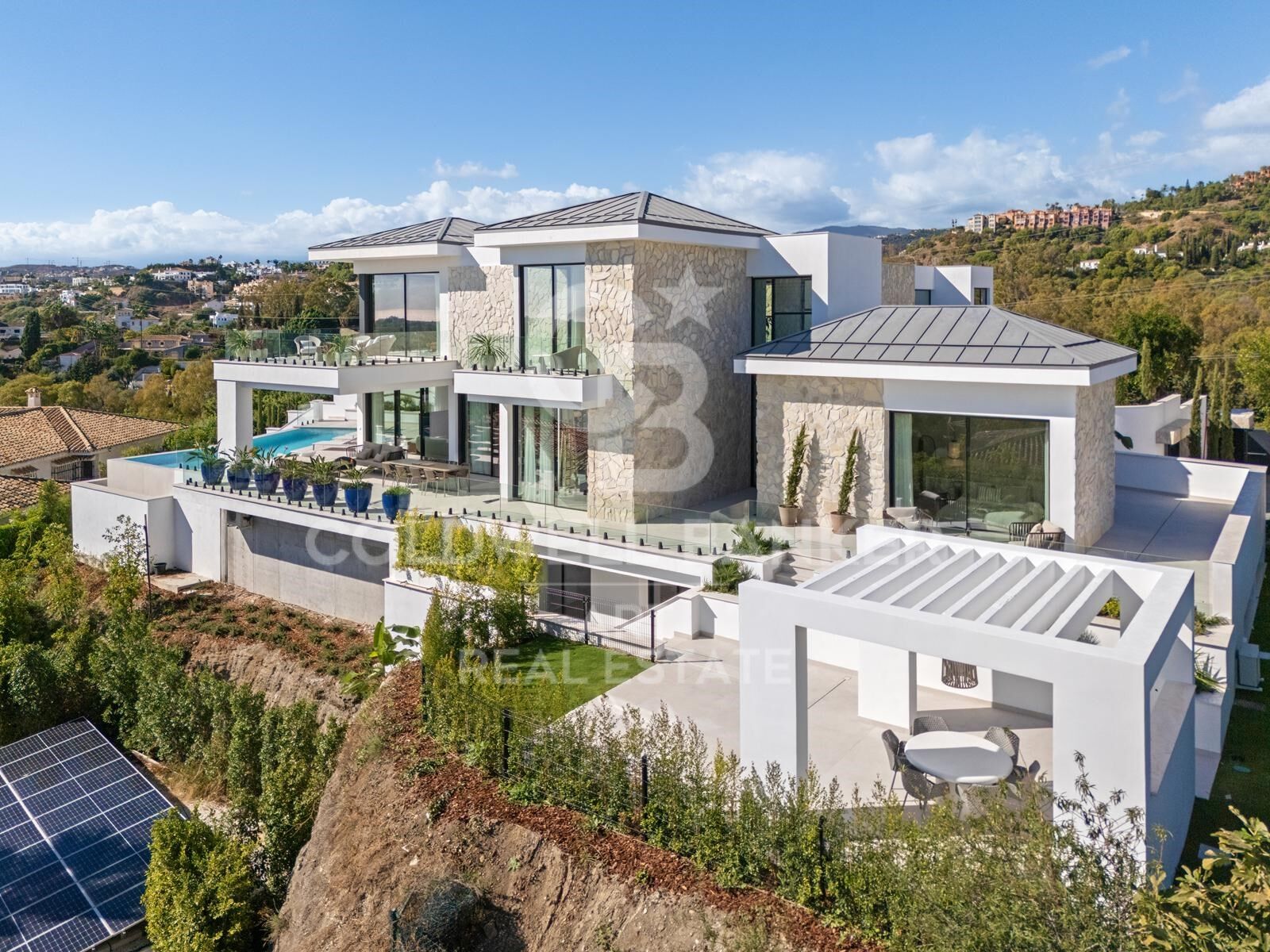 Prächtige zeitgenössische Residenz, gelegen im privaten Enklave in La Quinta, Marbella. Erschaffen von Cogitari Homes, spiegelt sie die perfekte Harmonie zwischen anspruchsvollem architektonischem Design und der ruhigen natürlichen Schönheit ihrer Umgebung wider. Zwischen dem Mittelmeer und dem Berg La Concha gelegen, bietet diese exklusive Villa einen Panoramablick über das Golfvalley und die Küste und garantiert gleichzeitig absolute Privatsphäre und Ruhe.