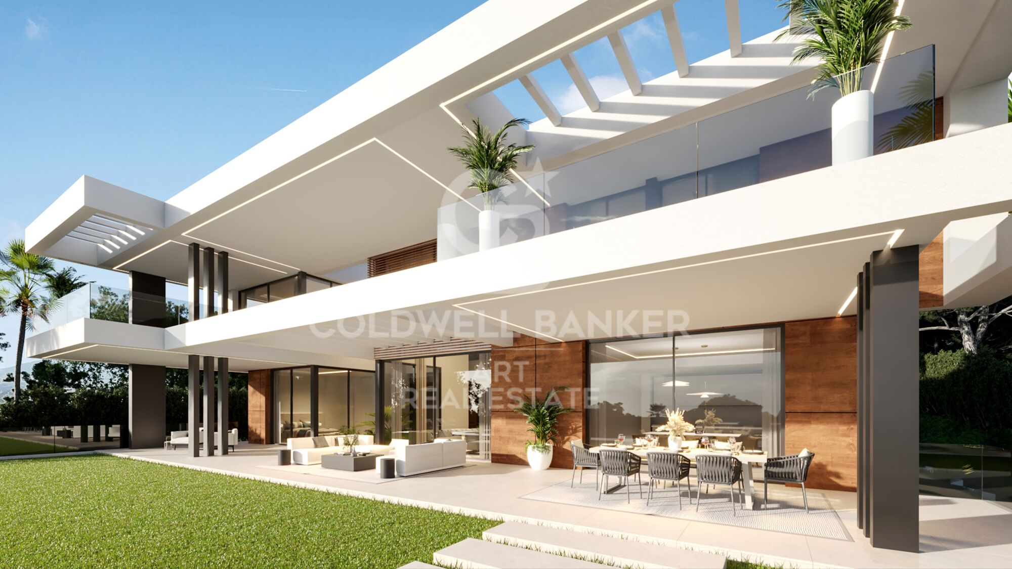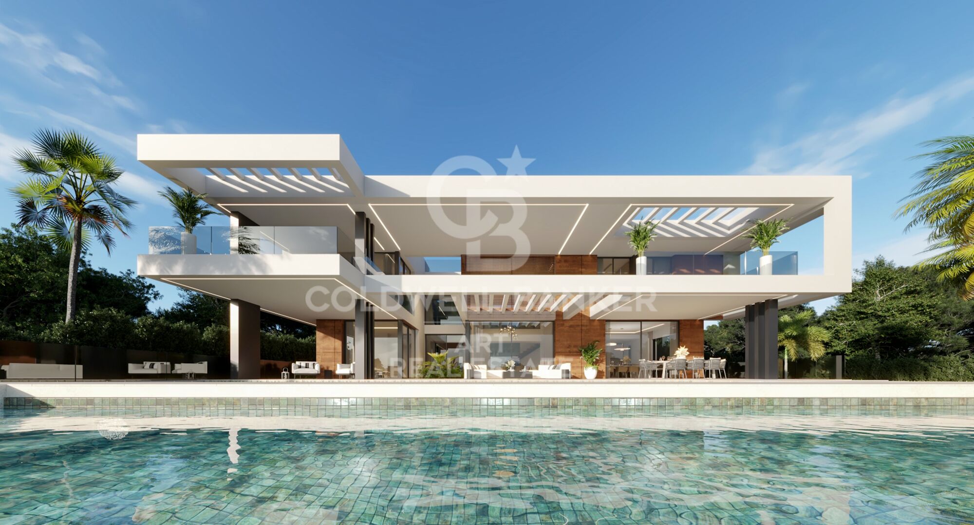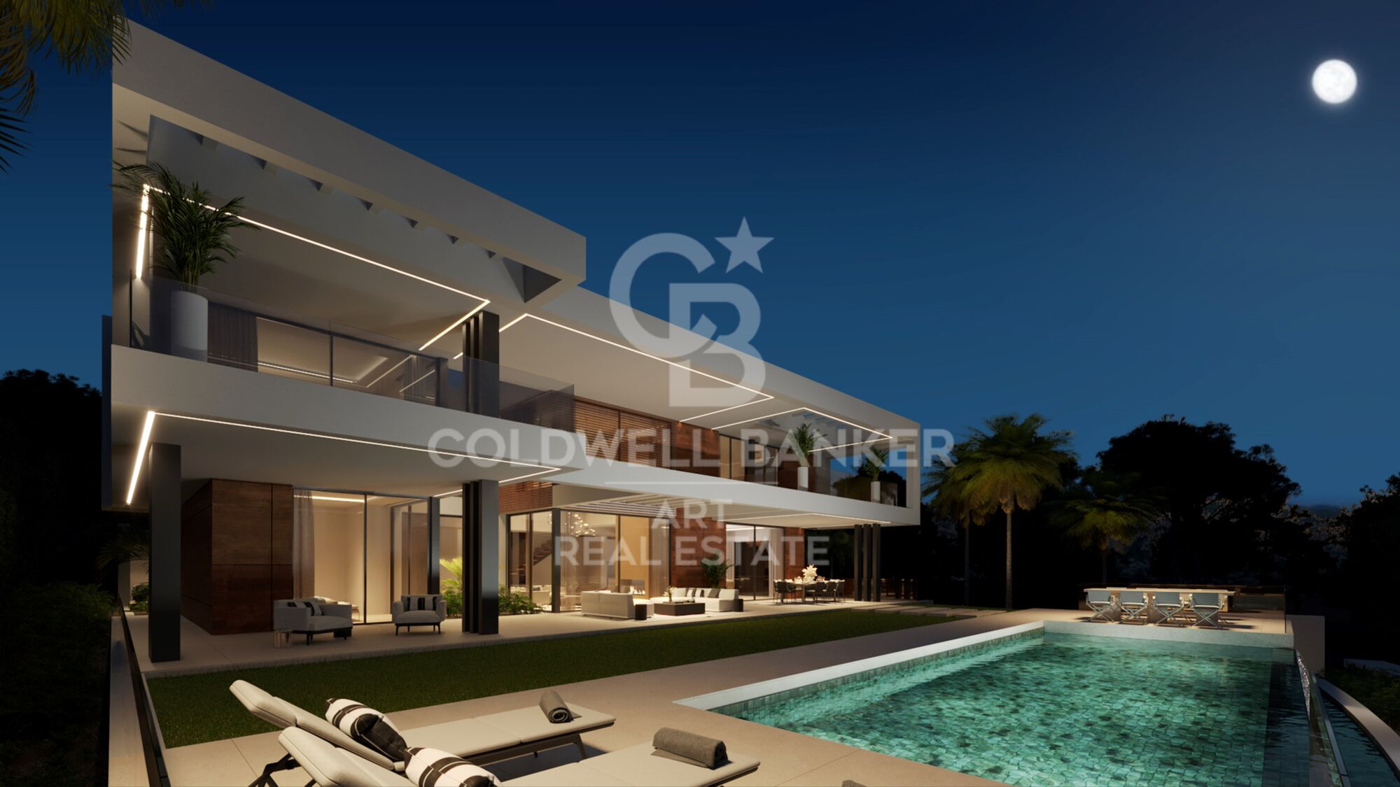 Eine bereits genehmigte Baugenehmigung ermöglicht den Bau einer luxuriösen Villa auf drei Etagen mit fünf Schlafzimmern und fünf Badezimmern. Geplant sind 414 m² Innenfläche, 356,98 m² Terrassenfläche, ein privater Pool mit 81 m² sowie eine Dachterrasse mit 200 m².