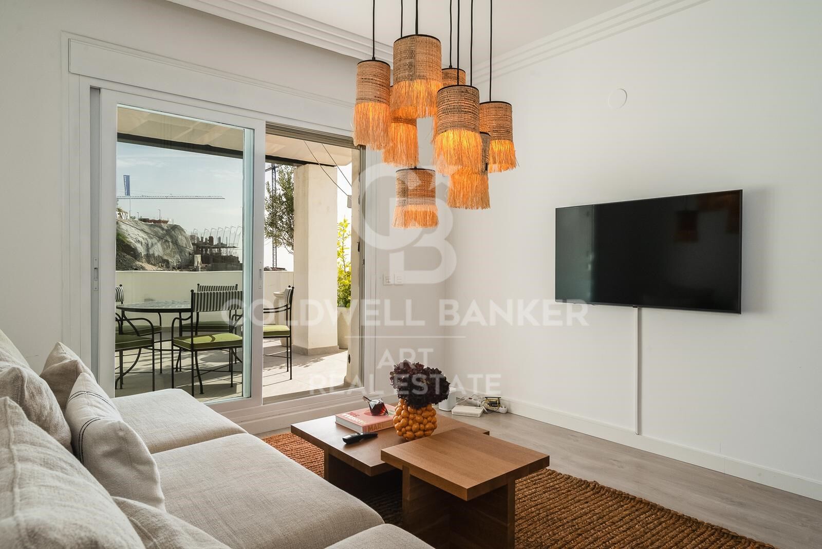 Treten Sie hinaus auf eine weitläufige 100 m² große Terrasse, die sorgfältig gestaltet ist und sowohl überdachte als auch offene Bereiche bietet, die sich ideal zum Unterhalten oder Entspannen in der Sonne eignen. Eine voll ausgestattete Außenküche macht das Essen im Freien mühelos und bietet gleichzeitig einen ungestörten Panoramablick auf das Mittelmeer.