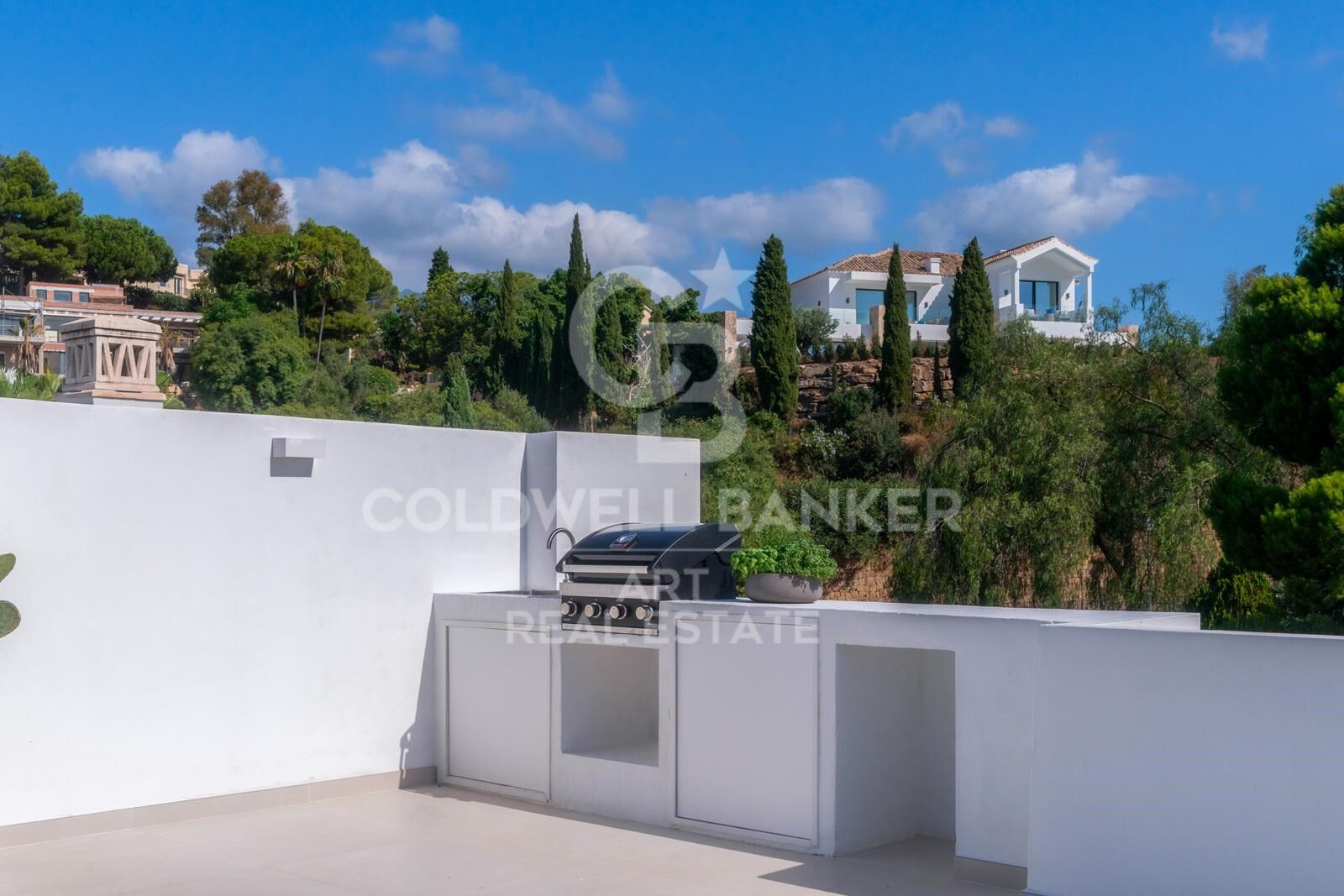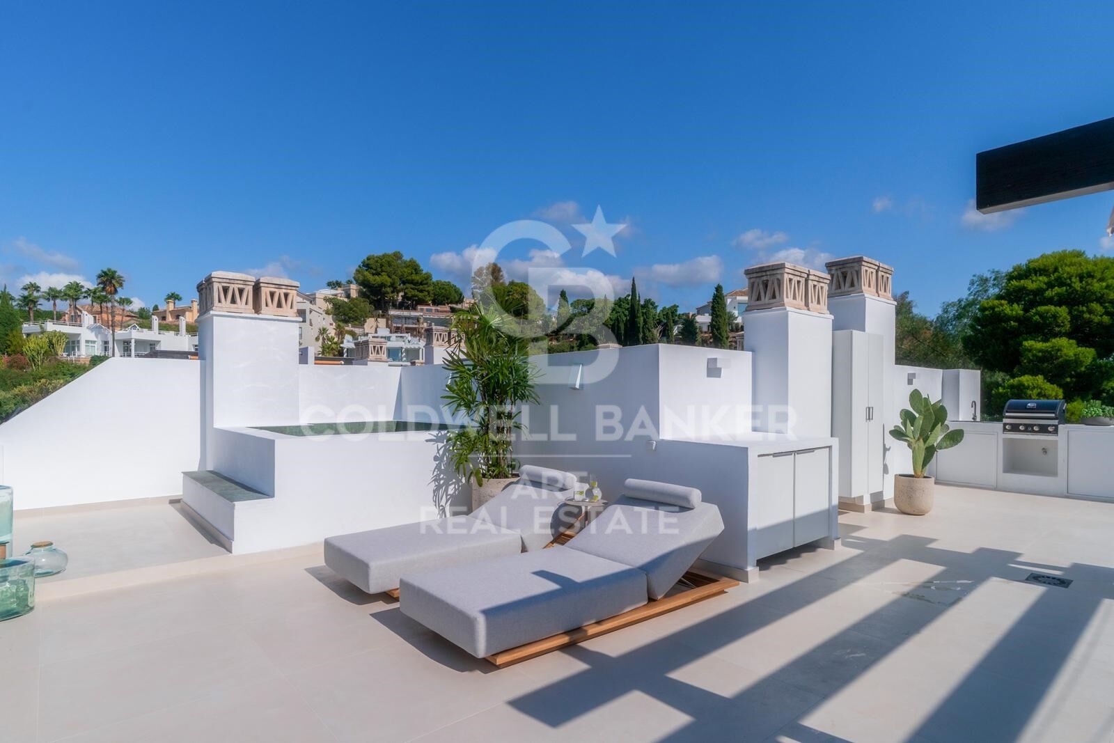 Mit einer bebauten Gesamtfläche von 308 m² verfügt das Haus über 124 m² raffinierte Wohnfläche und 163 m² große, nach Süden ausgerichtete Terrassen mit privatem Pool. Das Anwesen ist den ganzen Tag über in Tageslicht getaucht und bietet einen ungestörten Blick auf das Mittelmeer und den berühmten Berg La Concha.