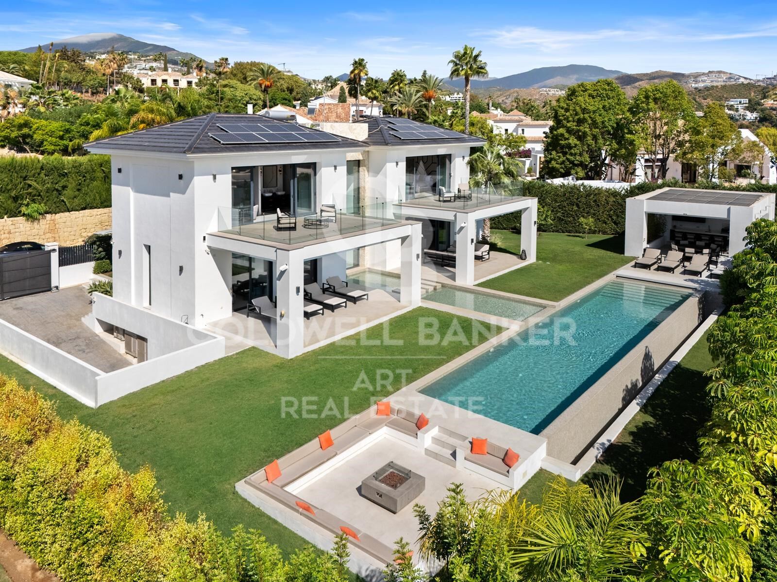 Im Inneren verfügen die Schlafzimmer über private Terrassen und moderne Ausstattungen, ergänzt durch einen Entertainment-Raum im Kino-Stil mit Bar, Billardtisch und Großbildprojektor.