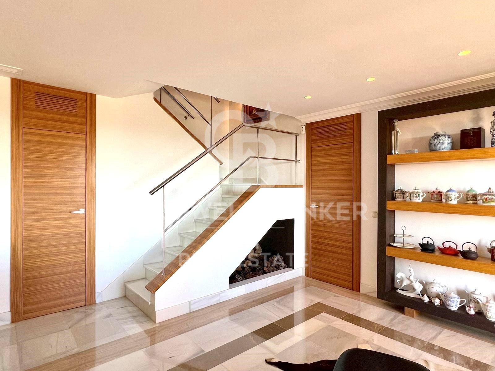 Zusätzliche Ausstattung: 2 Parkplätze (29 m²), Abstellraum (11 m²), Daikin-Klimaanlage, Fußbodenheizung in den Bädern, Innenausbau aus exotischem Zebrano-Holz, Kamin, Jacuzzi, doppelt verglaste Fenster, Alarmanlage, Terrassenmarkisen und hochwertige Küchengeräte. Die Anlage bietet einen Gemeinschaftspool und eine sichere, ruhige Umgebung.