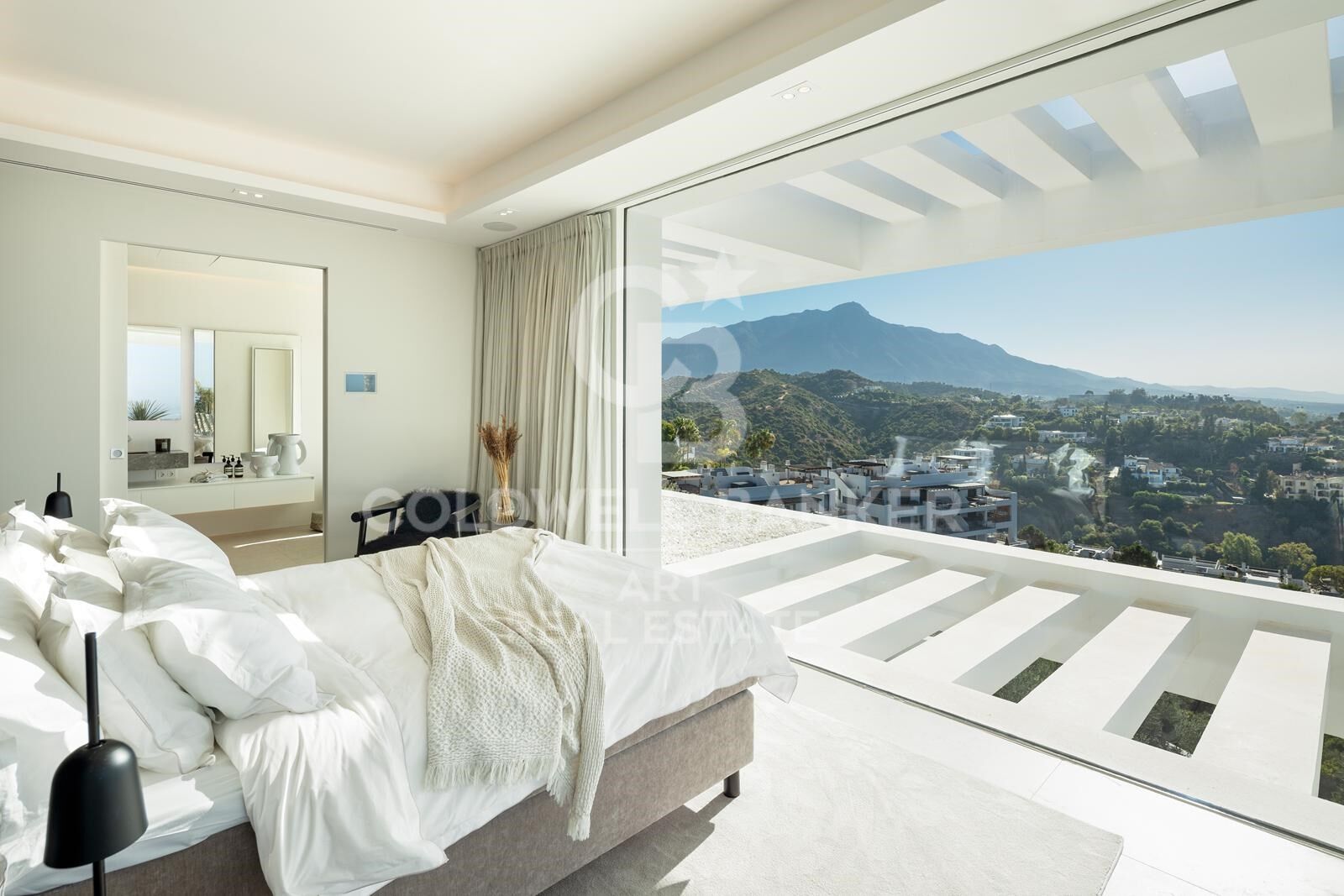 Zeitgenössische Villa mit Panoramablick auf Meer und Berge in La Quinta, Benahavís