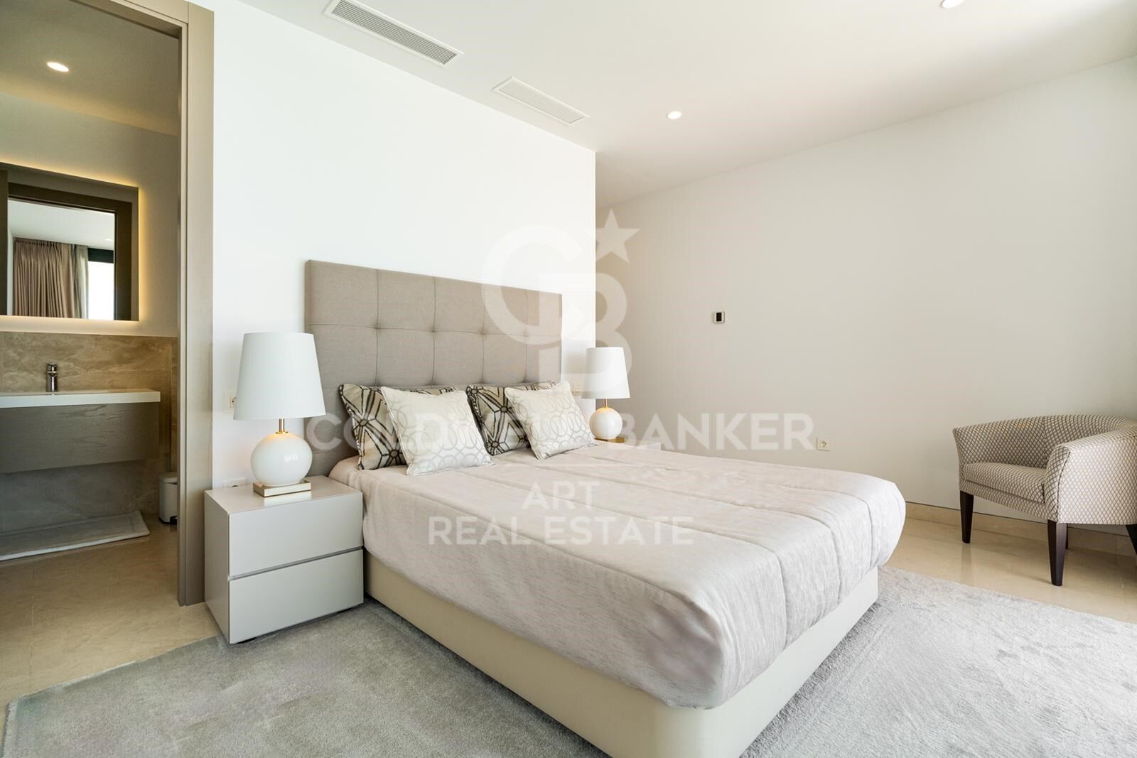 Das Haus verfügt über fünf elegante Schlafzimmer mit Bad, darunter eine luxuriöse Master-Suite mit direktem Zugang zu einer privaten Terrasse - jeder Raum wurde sorgfältig für Komfort, Privatsphäre und Stil gestaltet.