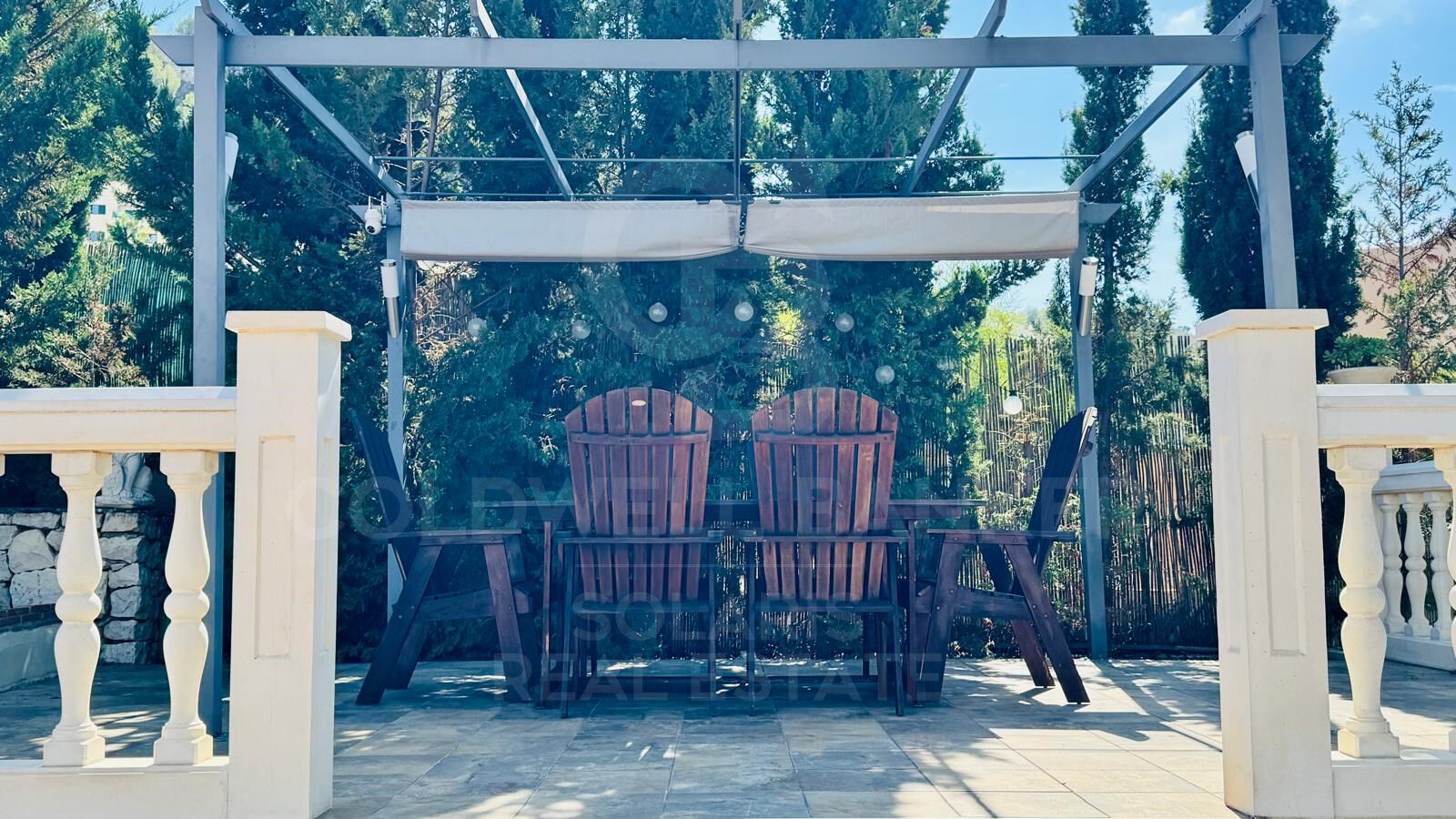 Terraza con pérgola ideal para comidas y cenas al aire libre