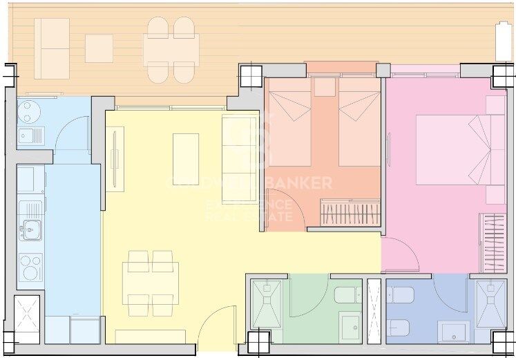 - B2N: 81 m², 2 Schlafzimmer, 2 Badezimmer, Garage. Terrasse von 19 m². Von 239,637€