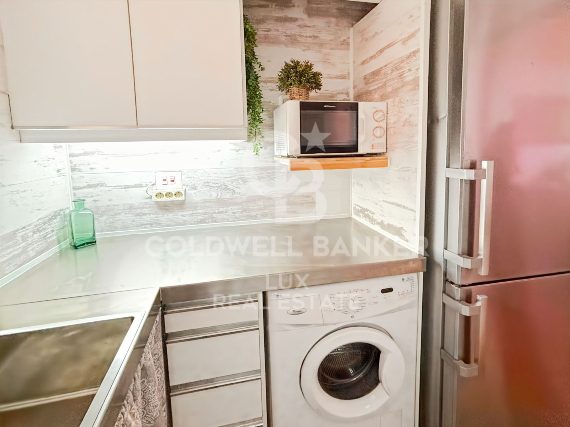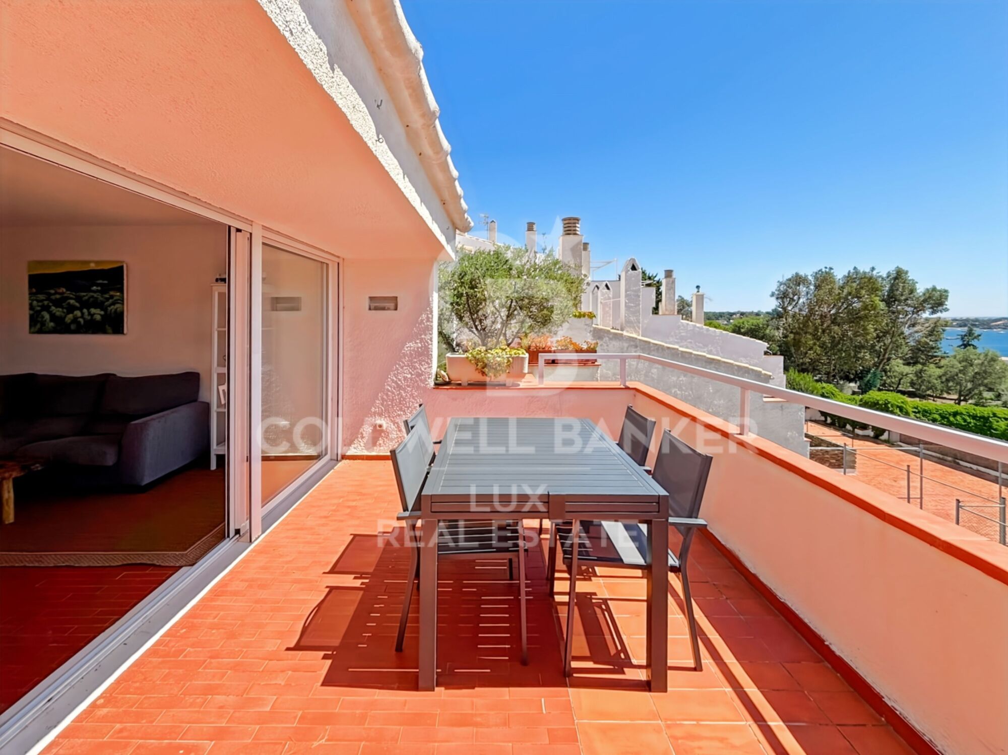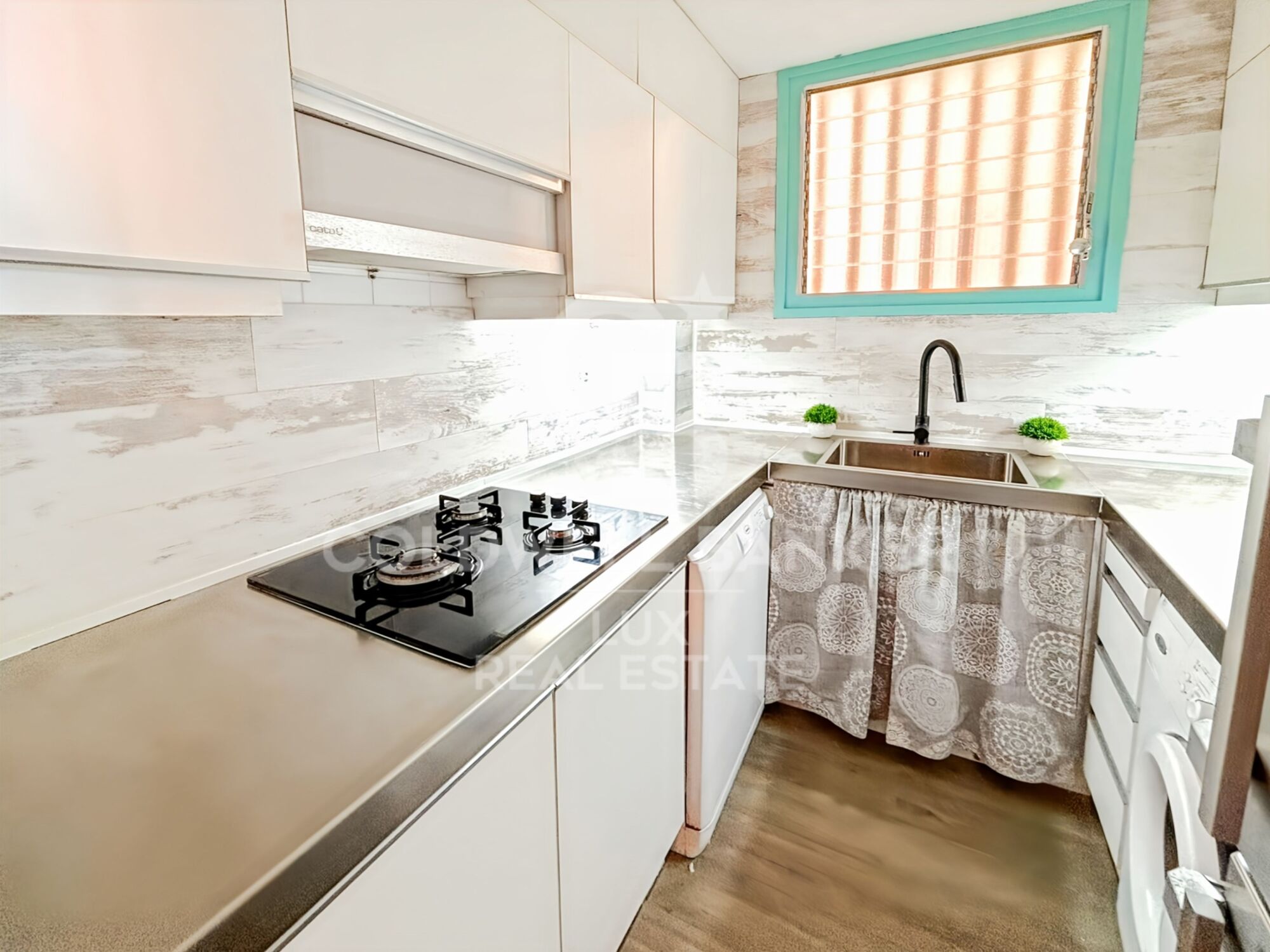 Die Wohnung ist nach Süden ausgerichtet und genießt den ganzen Tag über viel natürliches Licht. Das Wohn- und Esszimmer öffnet sich zu einer Terrasse mit freiem Blick auf das Meer. Die separate Küche wurde mit klaren, funktionalen Linien renoviert.