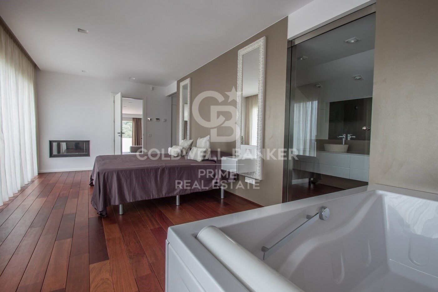 Additional amenities include a garage for 4 cars, various utility rooms, home automation, a redundant underfloor heating system, air conditioning (hot/cold), an alarm system, and automatic irrigation in the garden. This villa represents the pinnacle of elegance and comfort in the idyllic setting of the Costa Brava.