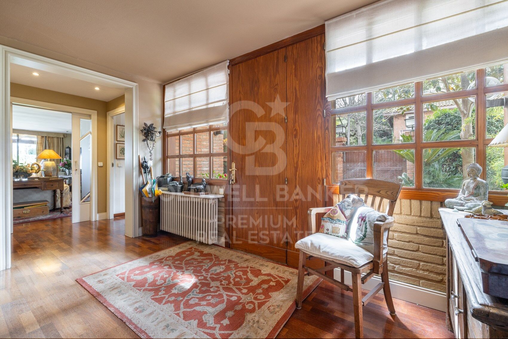 Das Haus wurde an die Bedürfnisse der Familie angepasst. Derzeit bietet es ein funktionales und komfortables Zuhause mit großzügigen Räumen, einer offenen Küche zum Garten und einem hellen Wohnzimmer, von dem aus man direkt auf den Garten und den Pool gelangt.