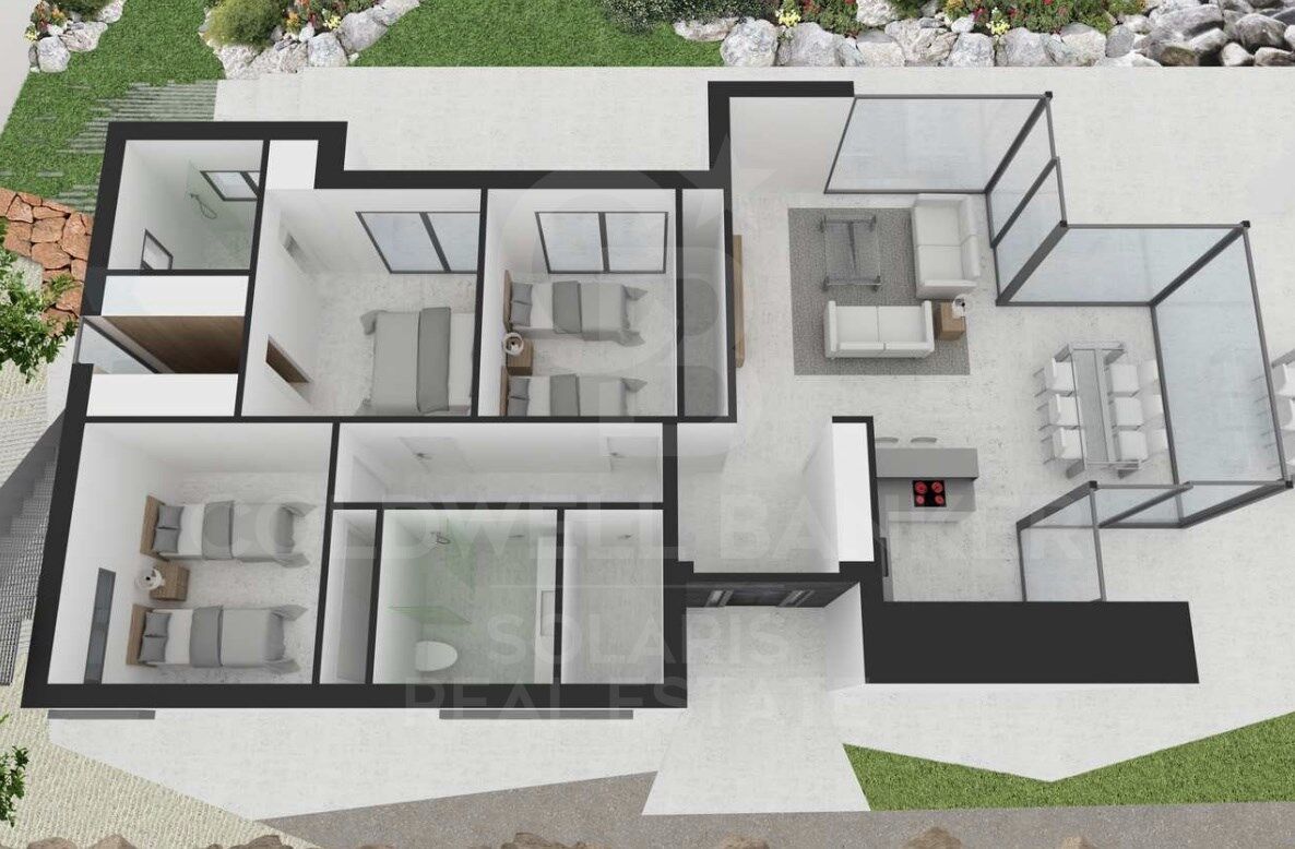 La propuesta arquitectónica plantea una vivienda moderna y luminosa, de líneas depuradas y grandes ventanales que favorecen la entrada de luz natural. Diseñada para integrarse en el entorno, utiliza materiales de alta calidad, asegurando eficiencia energética, máximo confort y un estilo contemporáneo exclusivo.