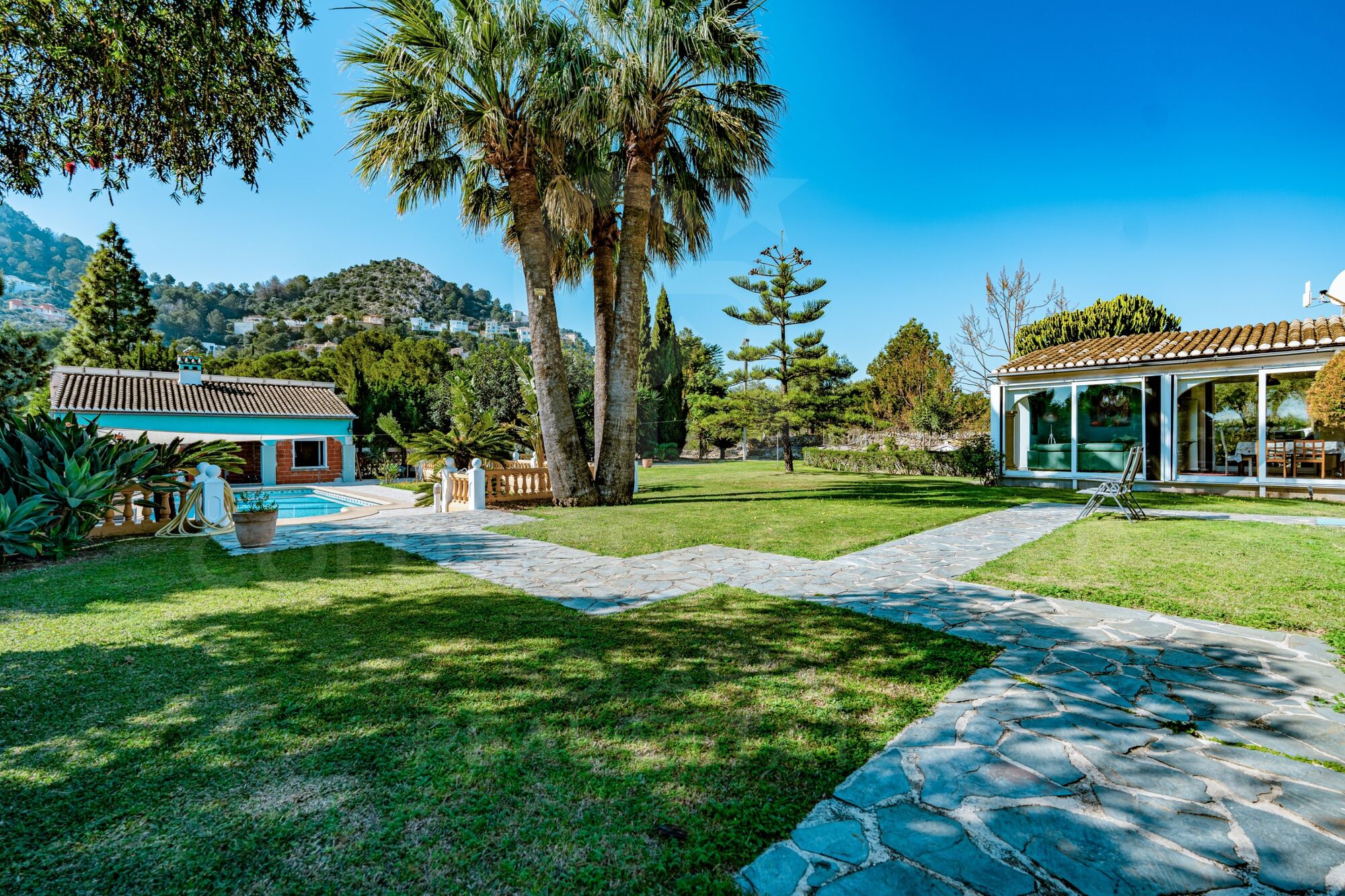 Diese elegante Finca befindet sich im prestigeträchtigen Viertel Albardanera in La Sella und repräsentiert eine perfekte Kombination aus Privatsphäre, Geräumigkeit und einem authentischen mediterranen Lebensstil. Das Grundstück liegt auf einem atemberaubenden, flachen Grundstück von 6.000 m² und bietet offene Ausblicke und eine privilegierte natürliche Umgebung, nur wenige Minuten von der Küste und allen Annehmlichkeiten entfernt.
