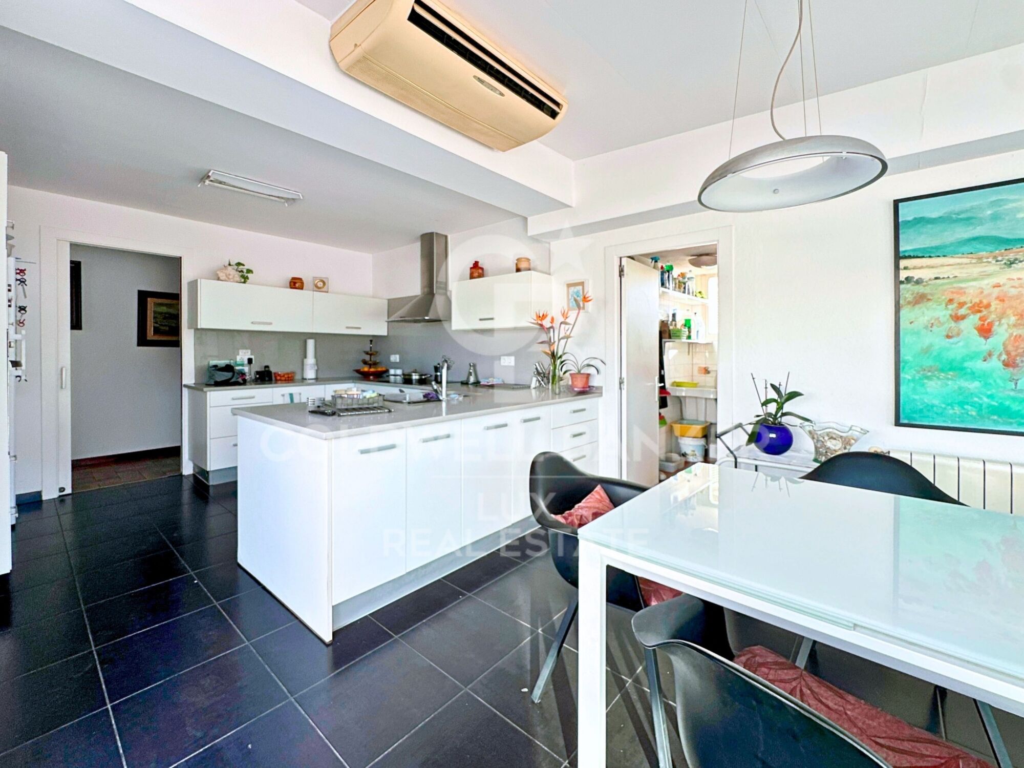 Das Schmuckstück der Immobilie befindet sich im ersten Stock mit einer Wohnfläche von 201,24 m2, die drei Doppelschlafzimmer, eine Suite mit eigenem Bad, Büros, ein Wohnzimmer mit Kamin und Zugang zu einer großen Außenterrasse mit Meerblick umfasst. Die separate Küche mit Esszimmer hat Zugang zu einer weiteren Terrasse, und das Vorhandensein einer Waschküche und eines Abstellraums trägt zur Zweckmäßigkeit bei. Ein separates Studio vervollständigt diese Etage.