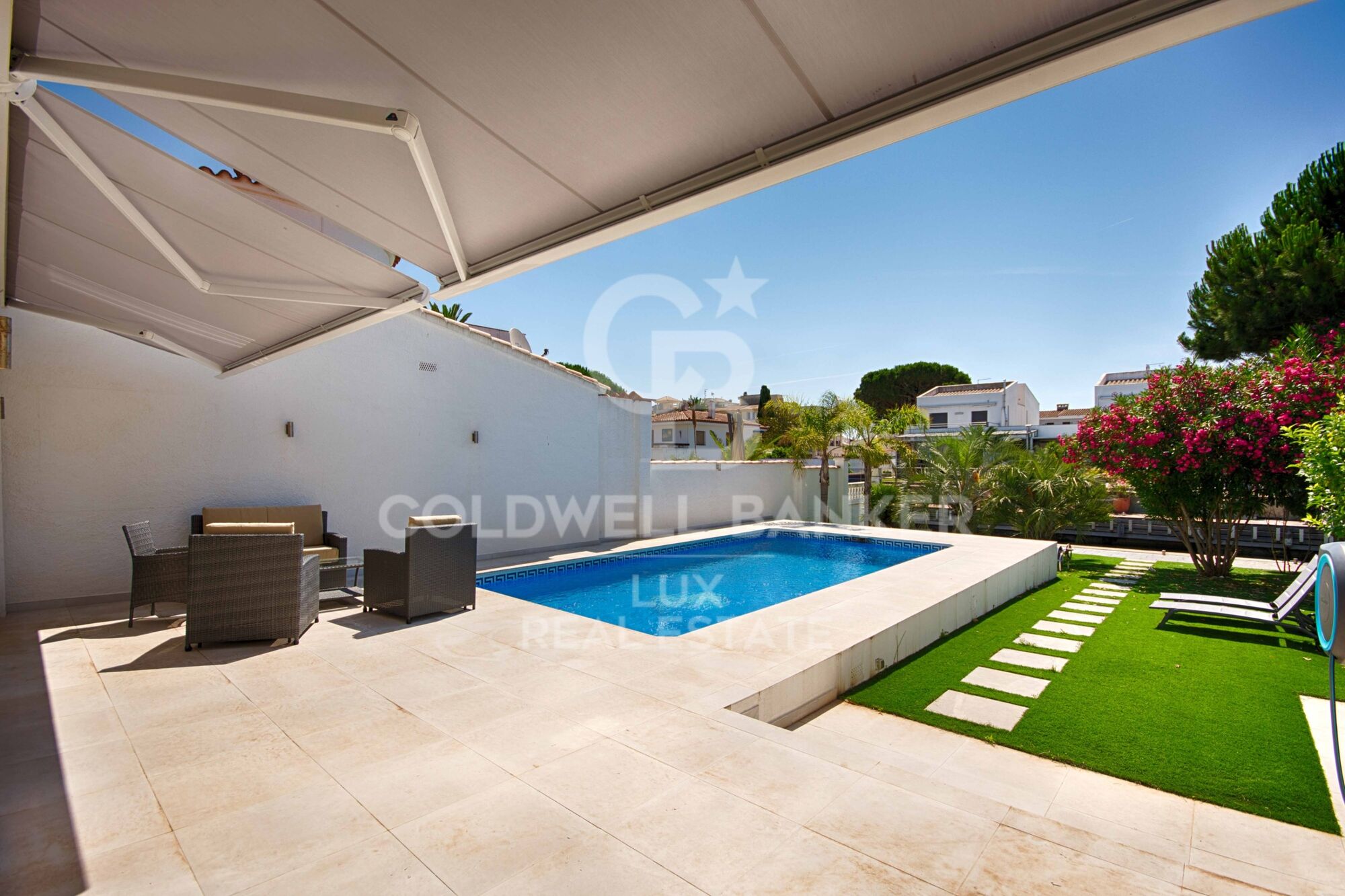 Das Haus verfügt über 3 Schlafzimmer, die alle mit Blick auf Komfort und Privatsphäre gestaltet sind. Das Hauptschlafzimmer mit eigenem Bad besticht durch seinen exklusiven Zugang zur Sonnenterrasse, auf der Sie sich entspannen und den Blick auf den Kanal von Empuriabrava, den größten Yachthafen Europas, genießen können. Ein weiteres Schlafzimmer verfügt über einen direkten Zugang zur Terrasse und bietet somit eine perfekte Verbindung zum Außenbereich.