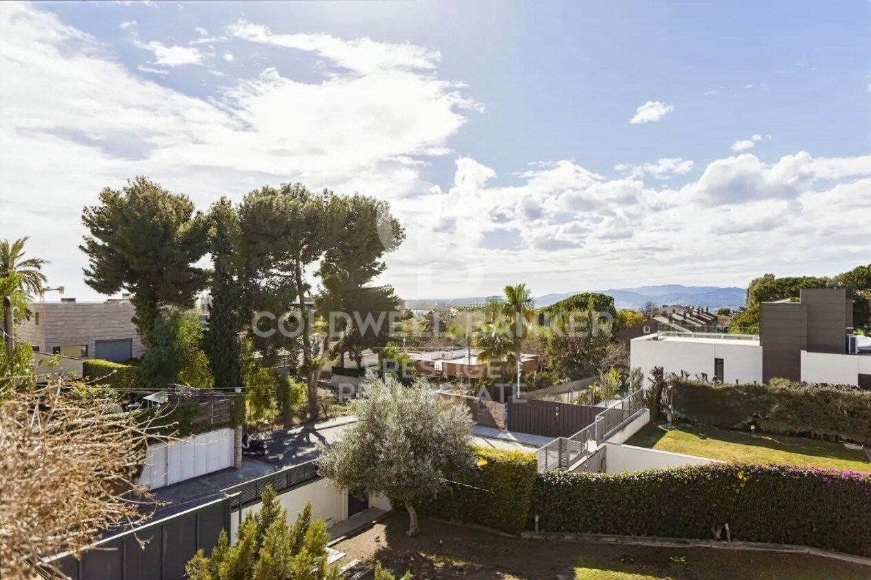 Designhaus in der Ciudad Diagonal: Eleganz, Aussicht und privilegierte Lage Wir präsentieren dieses spektakuläre zeitgenössische Designhaus in Ciudad Diagonal, einer privilegierten Lage in der Nähe der wichtigsten internationalen Schulen und umgeben von Natur. Hauptmerkmale: Bebaute Fläche: 451 m², ergänzt durch großzügige Terrassen. Grundstücksfläche: 801 m². Verteilung auf vier Etagen, die durch einen Aufzug verbunden sind. Gestaltung und Ausstattung: Komplett renoviert mit Materialien von höchster Qualität, kombiniert diese Immobilie ein modernes, neutrales und zeitloses Design mit Funktionalität und Komfort. Hohe Decken, große Fenster und außergewöhnliche Ausblicke auf das Meer und den Collserola-Berg machen dieses Haus einzigartig. Aufteilung der Räume: Erdgeschoss: Es ist auf zwei Ebenen angelegt und verfügt über ein geräumiges Wohn-Esszimmer mit Kamin und Zugang zu einer Terrasse mit Blick auf das Meer und den privaten Garten. Auf dieser Etage befinden sich auch eine Bibliothek, eine große Küche mit Zugang nach draußen, ein Wasserraum und eine Toilette. Erster Stock (Schlafbereich): Hier befinden sich zwei Doppelschlafzimmer und eine Master-Suite mit Ankleideraum und Bad. Der Flur zeichnet sich durch seine Helligkeit und seine großen Fenster mit Aussicht aus. Erster Stock: Mehrzweckraum mit eigenem Bad und Zugang zu einer großen Sonnenterrasse. Perfekt für die Nutzung als Gästezimmer, Büro, Fitnessraum oder andere Zwecke. Die halbrunde Verglasung sorgt für ein exklusives Design. Untere Etage: Separater Bereich, ideal für Gäste, mit einem großen Wohnzimmer, einem Schlafzimmer mit Doppelbett und einem Badezimmer. Von hier aus hat man Zugang zu einer Veranda und dem Garten mit privatem Swimmingpool. Garage: Platz für zwei Autos und mehrere Motorräder, auf der Höhe der oberen Etagen gelegen. Warum diese Immobilie wählen: Dieses Haus bietet alles, was ein anspruchsvoller Kunde sucht: strategische Lage, atemberaubende Aussicht, Helligkeit, durchdachtes Design, funktionelles Layout und Privatsphäre. #ref:CBES1588