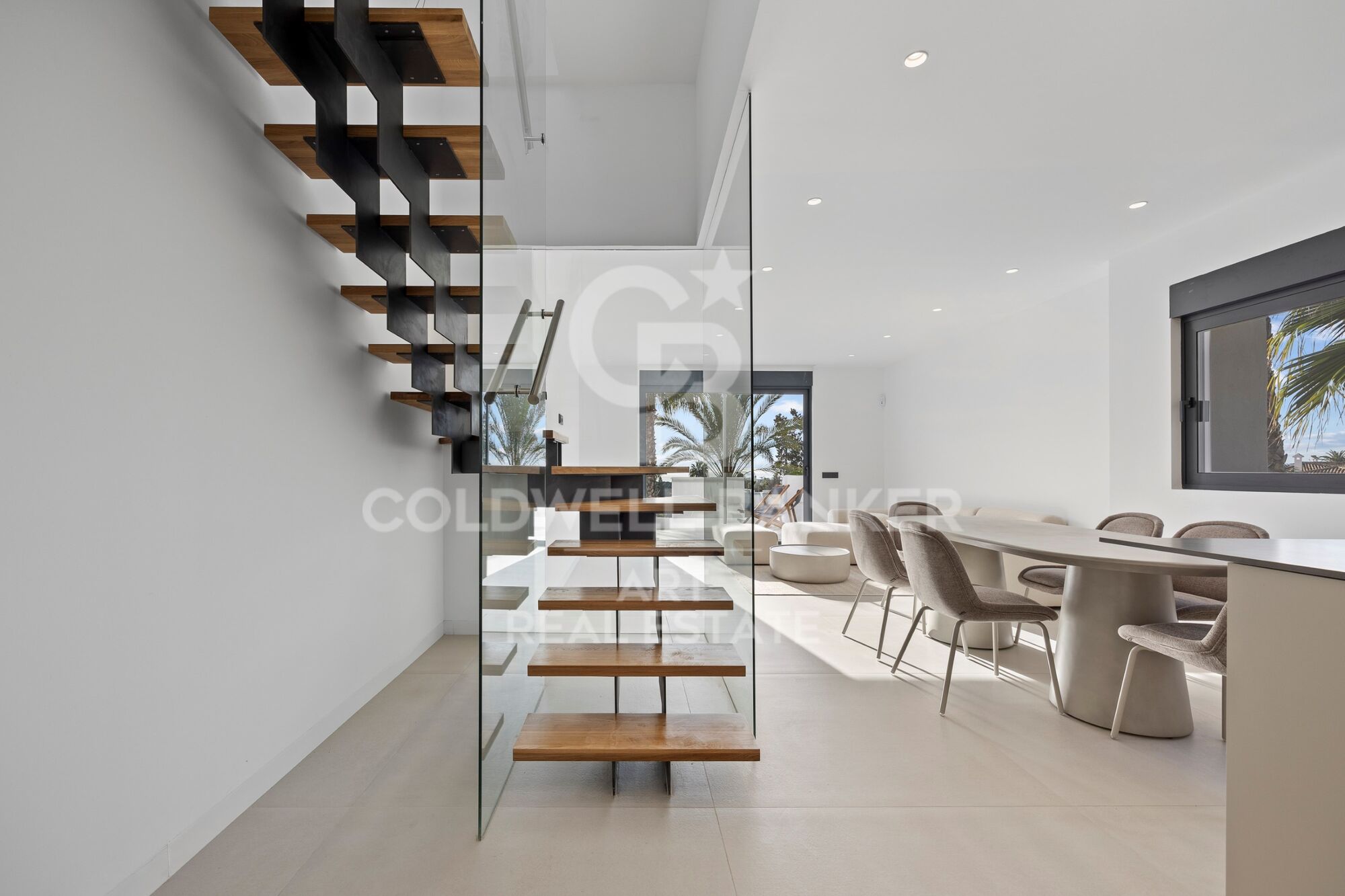 Genießen Sie den Blick auf das Meer und die Berge, mit privatem Pool und privatem Parkplatz, in der Nähe von Puerto Banús in Marbella und in der Nähe aller Arten von Einrichtungen, um Ihren Lieblingssport auszuüben.