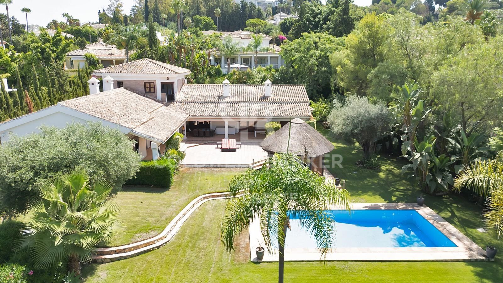 Willkommen in dieser außergewöhnlichen Residenz mit vier Schlafzimmern in El Paraíso, gelegen im Herzen der begehrten Neuen Goldenen Meile - einer der exklusivsten Gegenden an der Costa del Sol. Auf einem großzügigen Grundstück von 2.500 m² gelegen, ist das Anwesen von üppigen, gepflegten Gärten umgeben, die Privatsphäre und natürliche Schönheit vereinen.