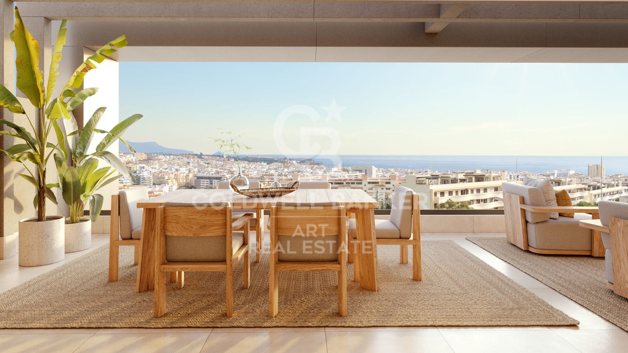 Alle Apartments verfügen über eine großzügige Terrasse, auf der Sie die Natur genießen können. Ob Sie sich sonnen, ein Abendessen organisieren oder einen Kaffee im Morgengrauen genießen, diese Räume erweitern Ihr Zuhause in Richtung der warmen mediterranen Luft. Die Penthäuser bringen den Luxus noch weiter, mit großen Dachterrassen und unvergleichlichem Meerblick.