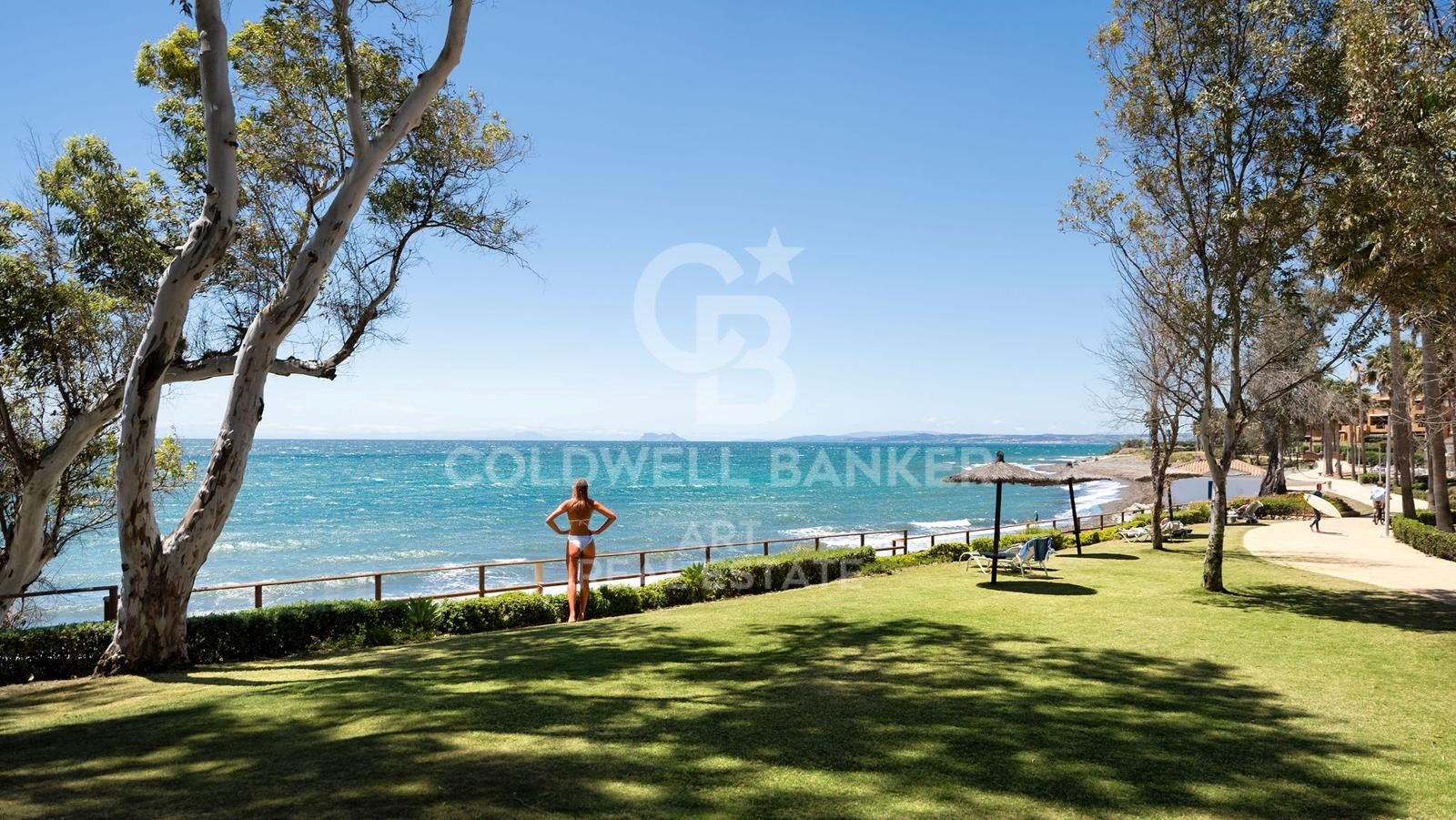Bahía de la Plata is recognized as one of Estepona's premier beachfront communities, where modern design harmonizes with Andalusian influences. The area features luxury low-rise properties and manicured gardens that reflect the tranquility and prestige of the location. Direct beach access adds to the appeal, connecting residents to the serene shores of Playa del Cristo and the scenic coastal promenade just minutes from the property.