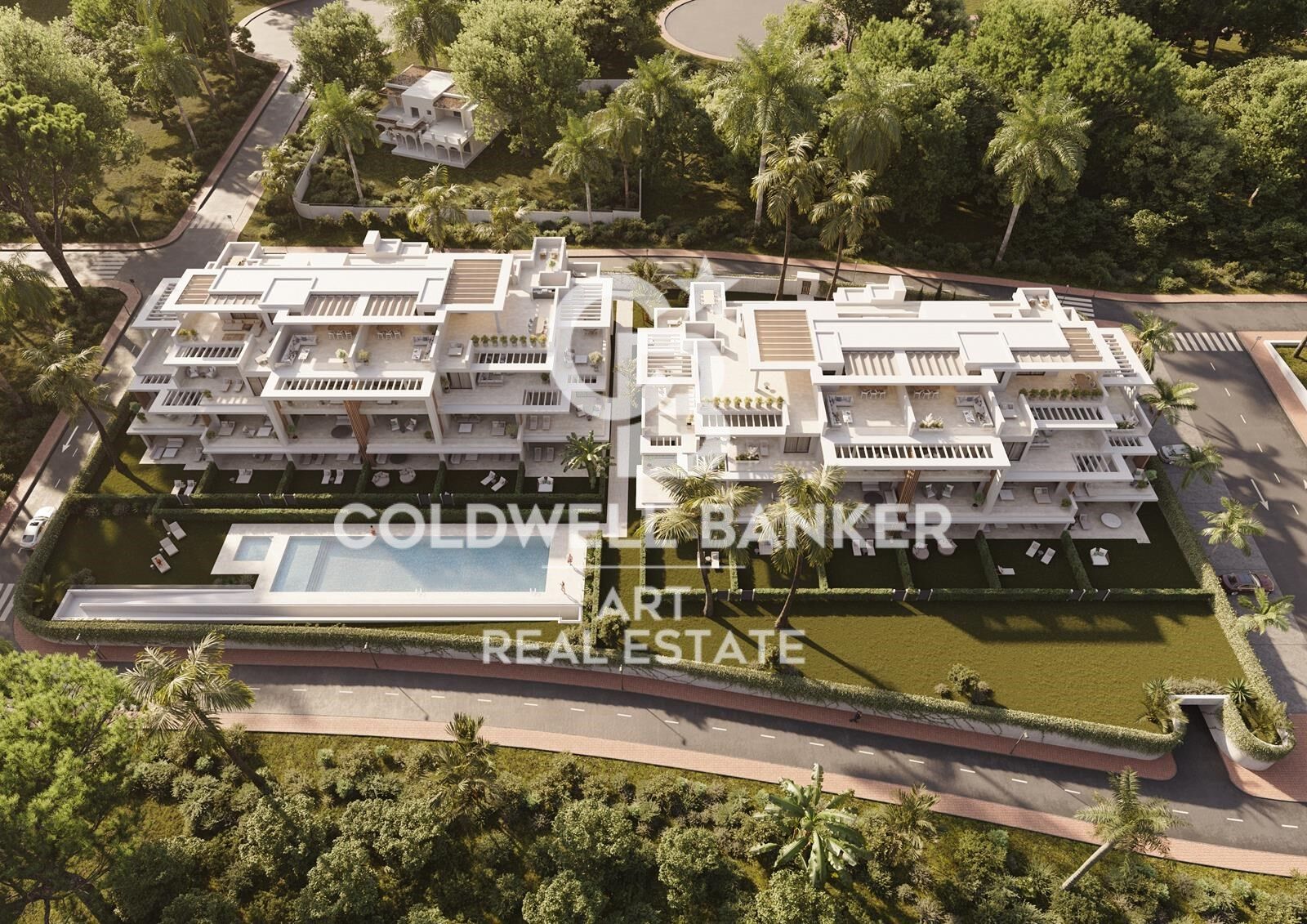 We invite you to discover Royal Park Residences, an exclusive development of luxury homes located in one of the most privileged areas of Estepona. This innovative residential concept seeks to provide its owners not only a home, but a complete experience, combining modernity, high-end amenities and an enviable natural environment with spectacular views of the Mediterranean Sea. Phase 1 of this project is distributed in 4 blocks, with options to suit the most demanding needs and tastes: - First floors with private gardens: ideal for those looking to enjoy an outdoor space in their own home, with spacious gardens, perfect for family gatherings, moments of relaxation or entertaining with friends. - First homes with sea views: Enjoy panoramic sea views from the comfort of your home, with spacious balconies that allow you to make the most of the natural surroundings. - Penthouses and apartments with solarium: For those looking for the best in design and comfort, we offer spectacular penthouses with private solarium, where you can enjoy the sun and the views, creating a unique and exclusive space. Each apartment has top quality finishes and carefully selected materials, ensuring a high standard in terms of design and functionality. You will be able to choose between 2, 3 or 4 bedroom homes, all designed to maximize space, natural light and comfort. The complex is distinguished by its luxurious facilities, designed to offer a unique lifestyle. Surrounded by carefully designed tropical gardens, residents will be able to enjoy a large communal swimming pool, ideal for relaxing or socializing, with open views of the surrounding landscape. In addition, the project includes two subway parking spaces per home, ensuring convenience and security, as well as a private storage room, perfect for additional storage. Security is a priority at Royal Park Residences, which is why the complex is located within a gated community with 24-hour surveillance, providing peace of mind and privacy to its residents. As part of this innovative concept, Royal Park Residences offers its owners access to a boutique hotel integrated into the complex. In addition, it has a sports area equipped so that residents can stay active and healthy without leaving the complex. With families in mind, the development also includes a children's area where the little ones can enjoy a safe and fun environment. Located in one of the most desirable areas of Estepona, Royal Park Residences offers the best of both worlds: a life surrounded by tranquility and nature, without giving up the proximity to the main basic services, such as stores, restaurants and leisure centers. Just minutes from the beach and the center of Estepona, residents will be able to enjoy the vibrant coastal life of the region, as well as the privacy and exclusivity that this development offers. If you are interested in more information about this spectacular development or would like to arrange a viewing, please do not hesitate to contact us. We will help you find the luxury home you have always wanted. #ref:CBSH42_BC