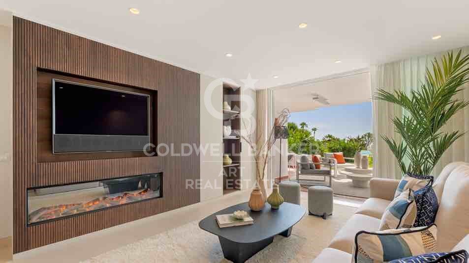 This stylish ground floor apartment, located in the exclusive community of Costalita, offers an open-concept layout with contemporary furnishings and high-quality finishes. Highlights include elegant flooring, custom-made built-in wardrobes, an electric fireplace and a Bang & Olufsen sound system.