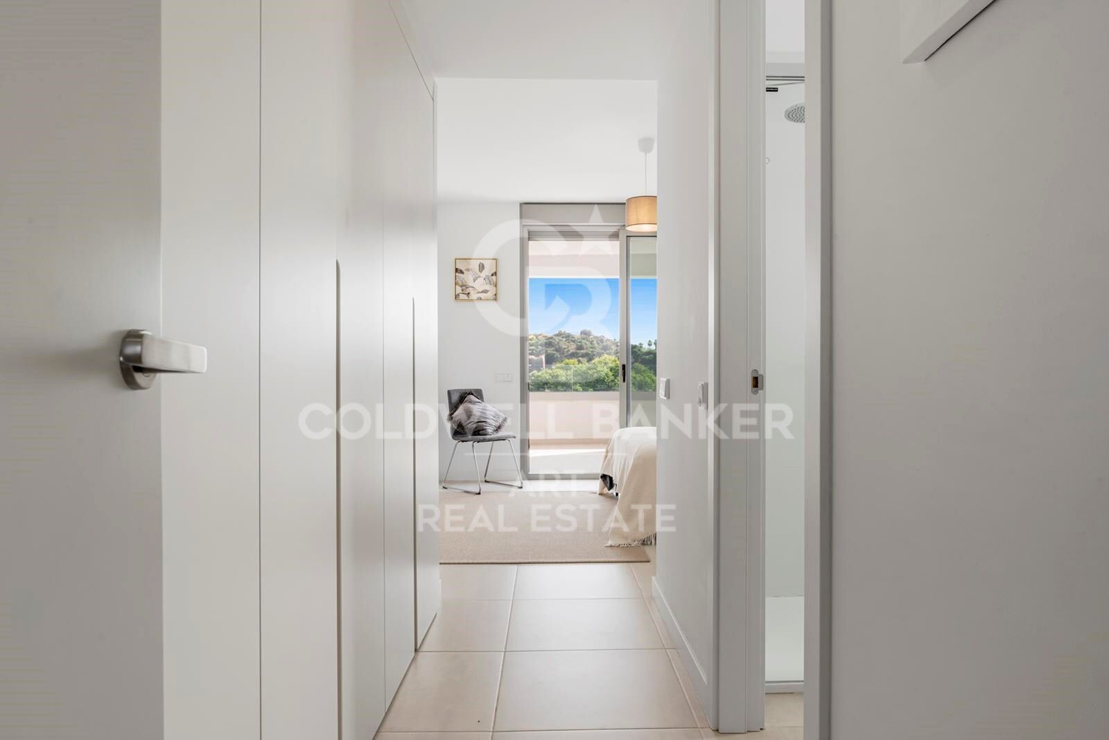 Das Hauptschlafzimmer verfügt über ein eigenes Bad sowie großzügige Einbauschränke. Ein zweites Schlafzimmer wird durch ein separates, modernes Bad ergänzt - ideal für Gäste oder Familienmitglieder. Sowohl das Wohnzimmer als auch das Hauptschlafzimmer bieten direkten Zugang zur großen, teilweise überdachten Terrasse - ideal zum Entspannen, Essen im Freien oder geselligen Beisammensein mit Blick ins Grüne und auf die Umgebung.