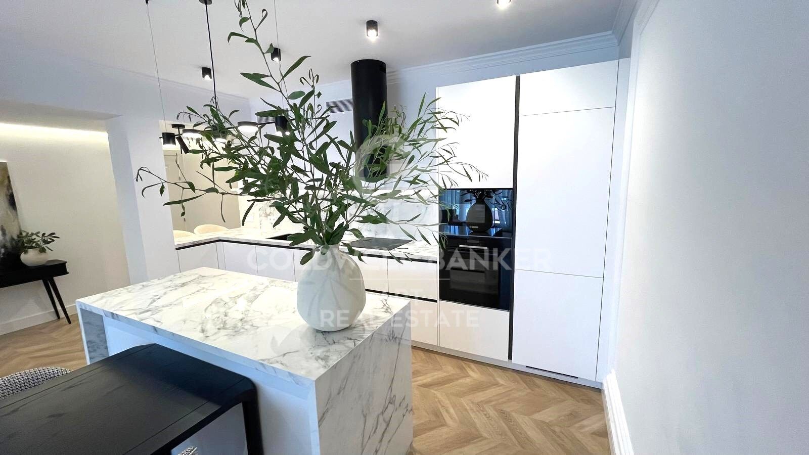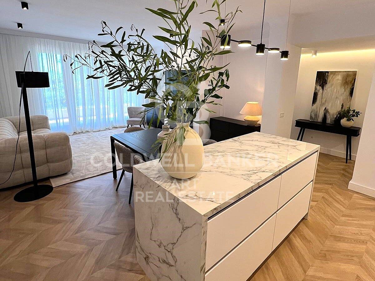 Der großzügige Wohnbereich verfügt über ein offenes Konzept, das Wohnzimmer, Essbereich und Küche nahtlos miteinander verbindet. Große Fenster lassen viel Tageslicht herein und bieten einen spektakulären Blick auf das Mittelmeer, wodurch eine perfekte Atmosphäre zum Entspannen zu Hause entsteht.