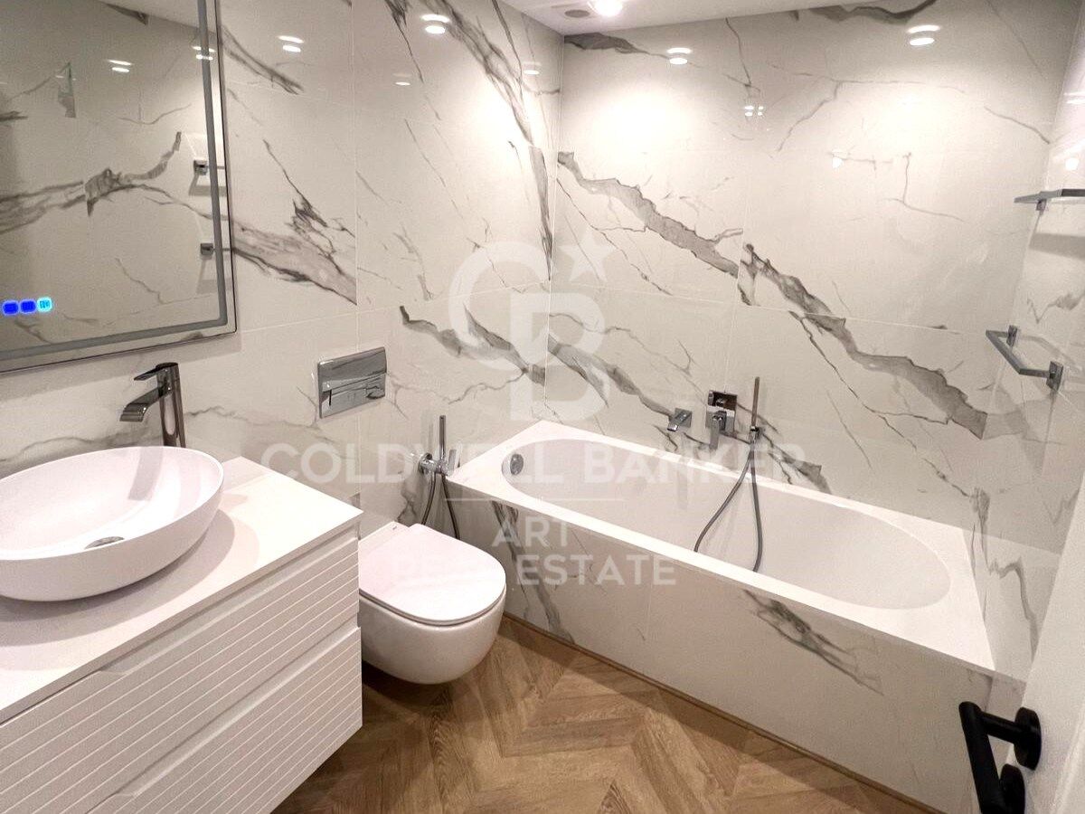 Die Wohnung verfügt über drei geräumige Schlafzimmer, darunter eine Hauptsuite mit eigenem Bad für zusätzliche Privatsphäre und Komfort. Die beiden anderen Schlafzimmer teilen sich ein elegantes Gästebadezimmer, beide ausgestattet mit modernen Armaturen und praktischem Stauraum.
