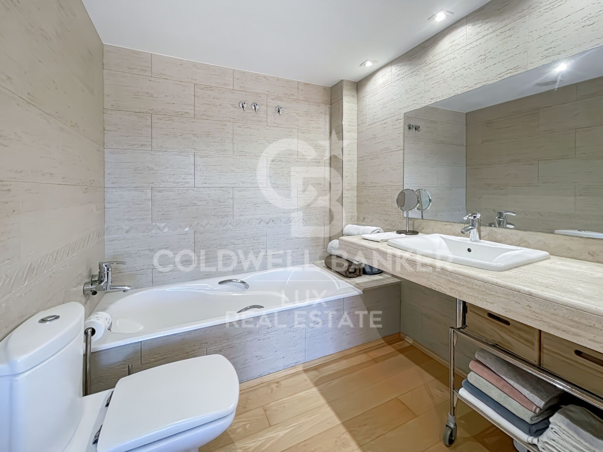 Im Nachtbereich befindet sich eine erste Suite mit Ankleideraum, Zugang zu einem Außenbalkon und einem kompletten Badezimmer mit Badewanne und Dusche. Zwei weitere Doppelschlafzimmer mit Einbauschränken und ein komplettes, unabhängiges Badezimmer vervollständigen die Immobilie.