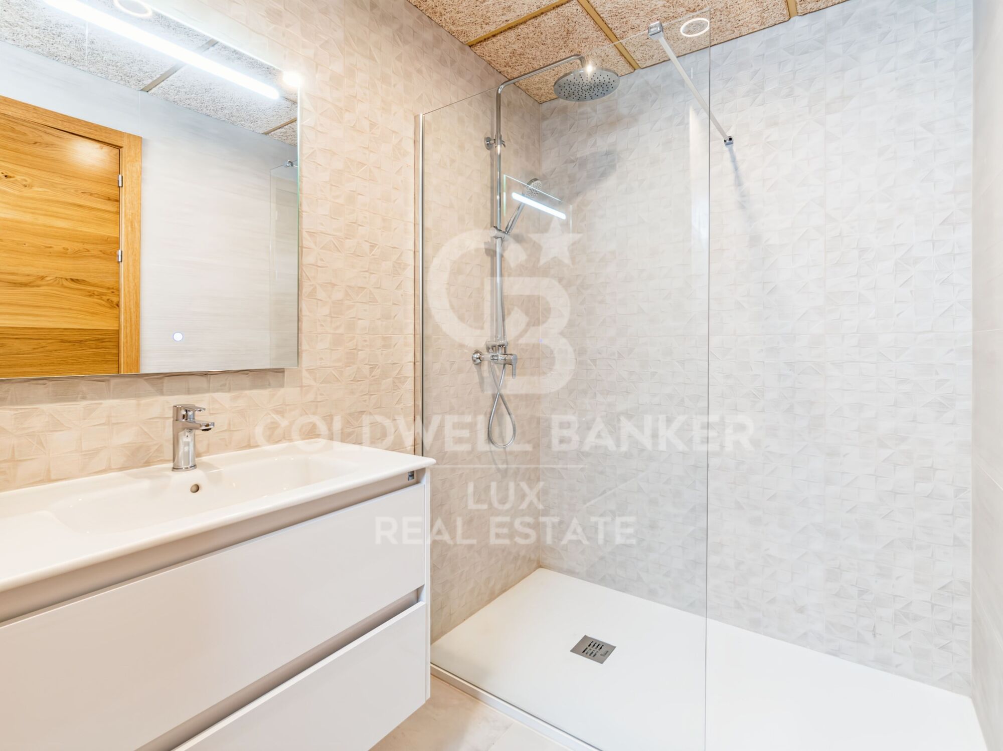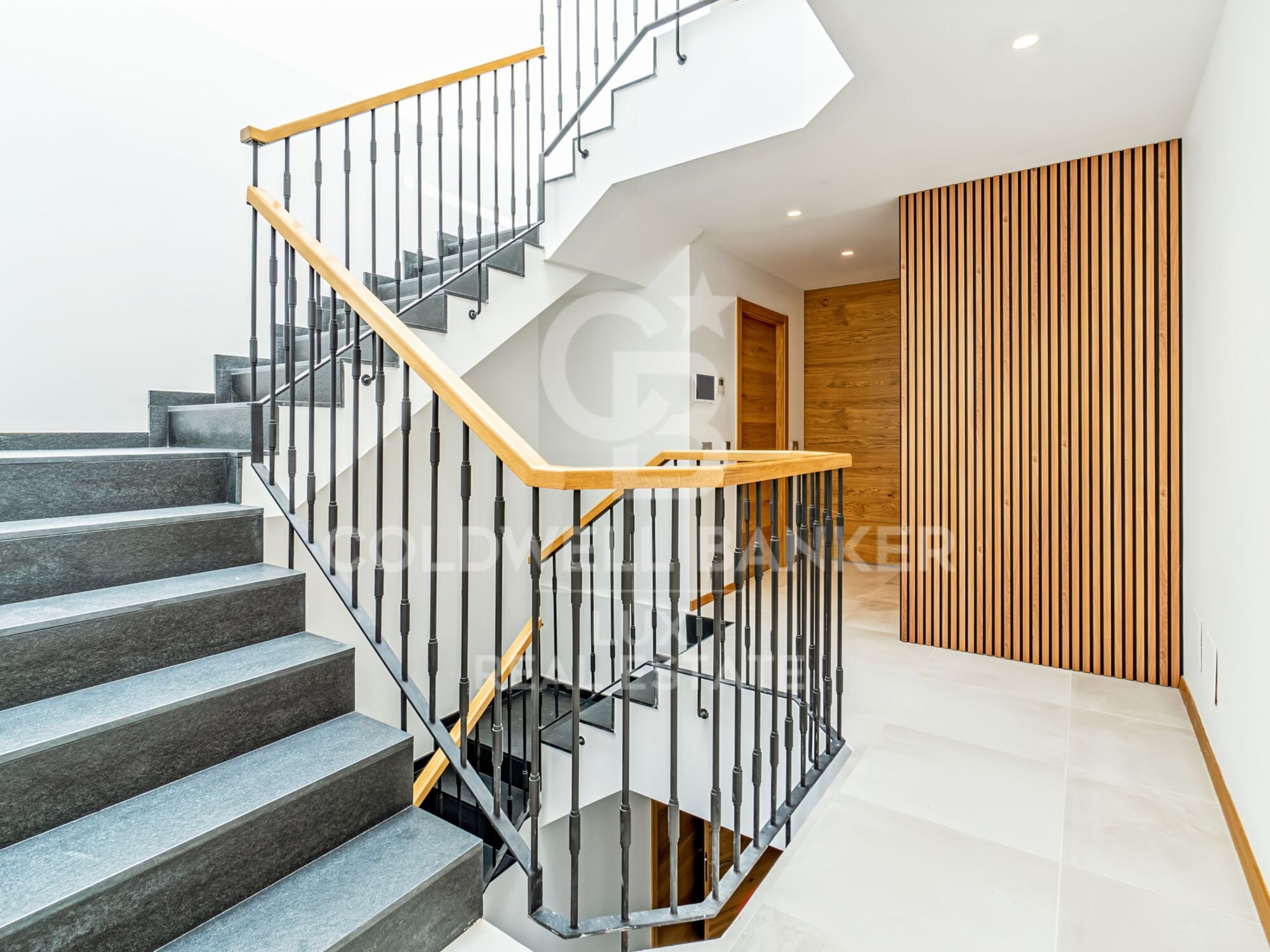 Das Haus ist auf drei Ebenen verteilt, mit einer voll ausgestatteten, unabhängigen Küche und einem geräumigen und hellen Wohn-Esszimmer. Außerdem gibt es im ersten Stock eine 25 m² große Terrasse.