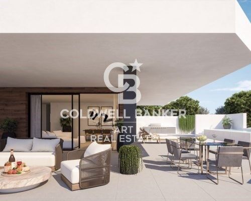 Alle Wohnungen verfügen über pyramidenförmige, nach Süden ausgerichtete Terrassen mit Außenküche und Dusche, ideal zum Genießen des privilegierten Klimas der Costa del Sol.