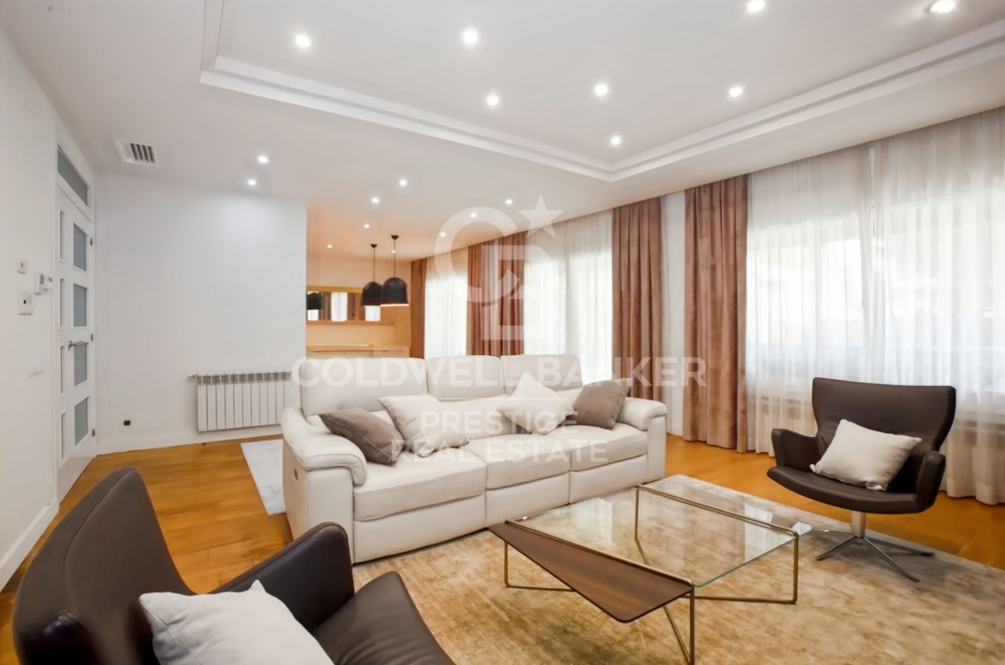Es verfügt über eine hochwertige Ausstattung: Parkett- und Feinsteinzeugböden, individuelle Heizung, Klimaanlage, Aluminiumfenster mit Doppelverglasung und Einbauschränke.