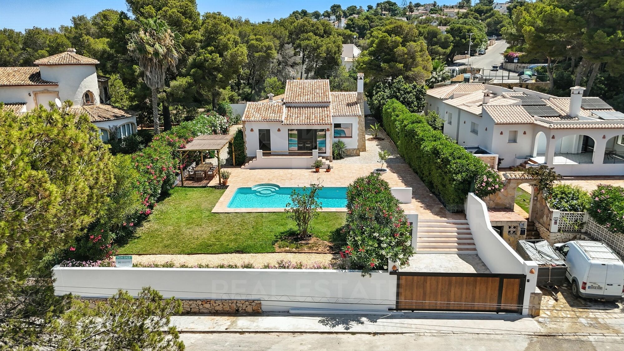 Das Interieur verbindet Stil und Funktionalität perfekt: Eine offene Designküche verbindet sich mit der Poolterrasse und schafft eine Atmosphäre, die Innen und Außen miteinander verbindet. Die Immobilie wird komplett möbliert geliefert und kann vom ersten Tag an genossen werden.