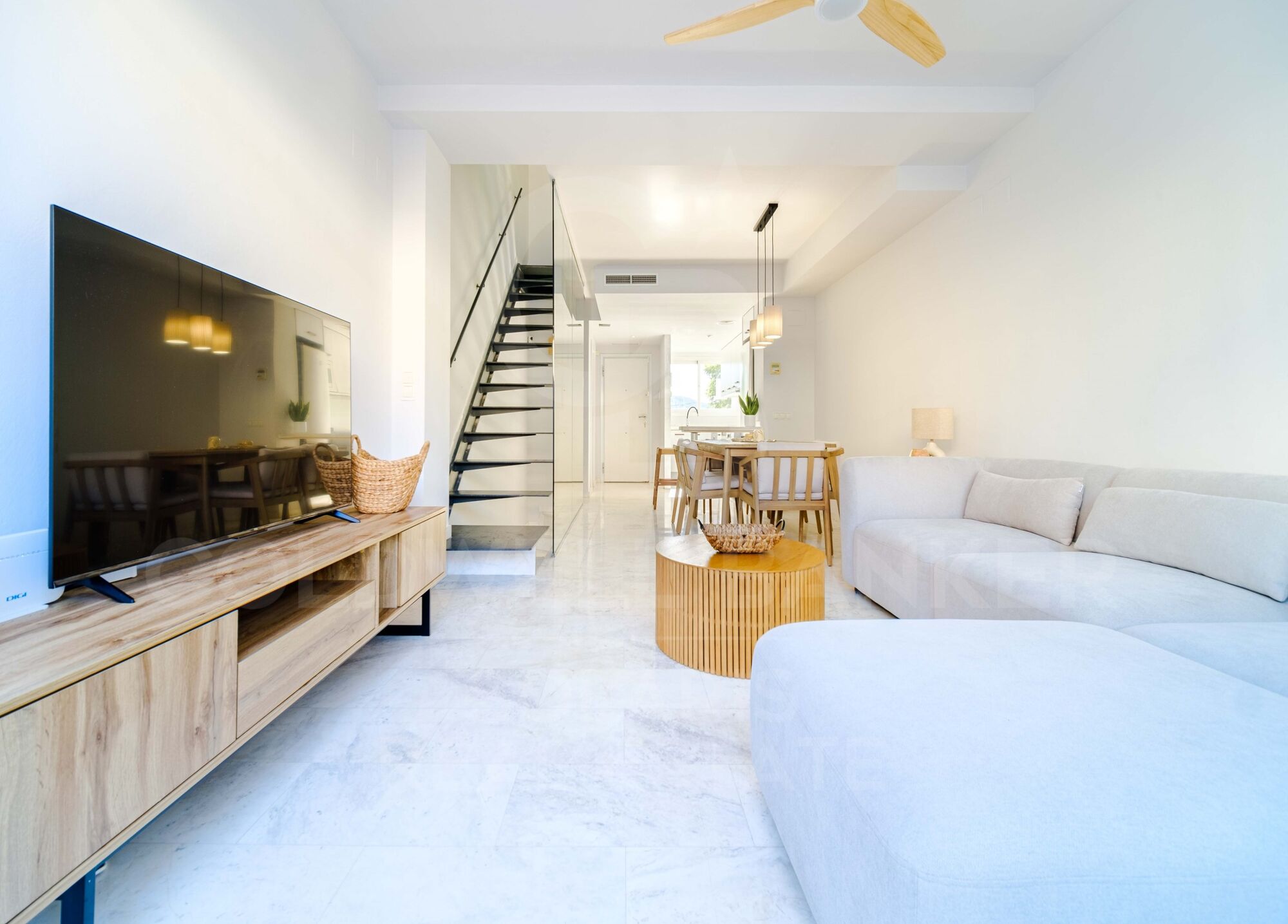 Nur 2 Minuten vom Meer entfernt, entdecken Sie dieses Stadthaus in einer ruhigen und exklusiven Urbanisation von Jávea, ideal sowohl zum ganzjährigen Wohnen als auch zum Genießen im Urlaub.