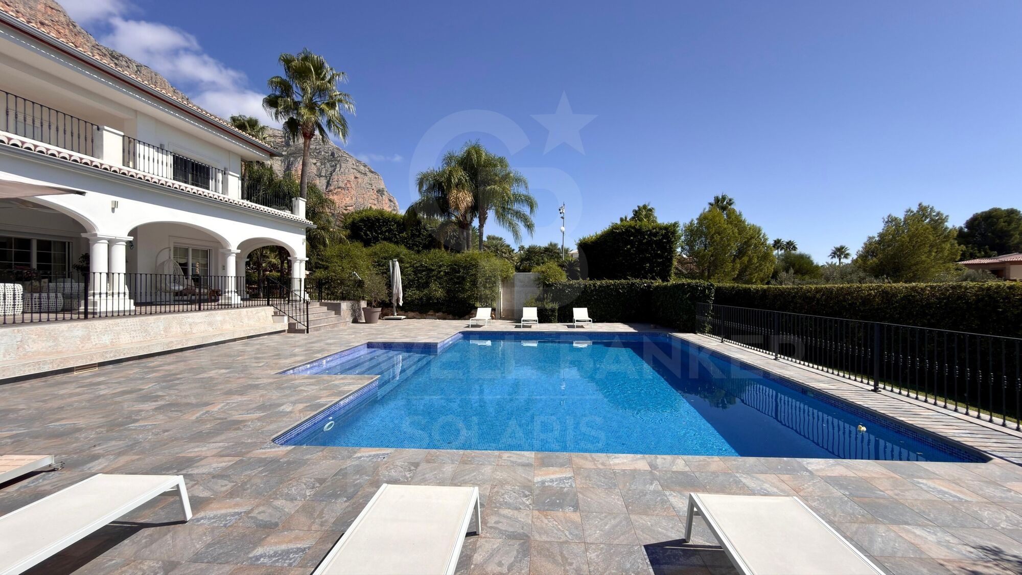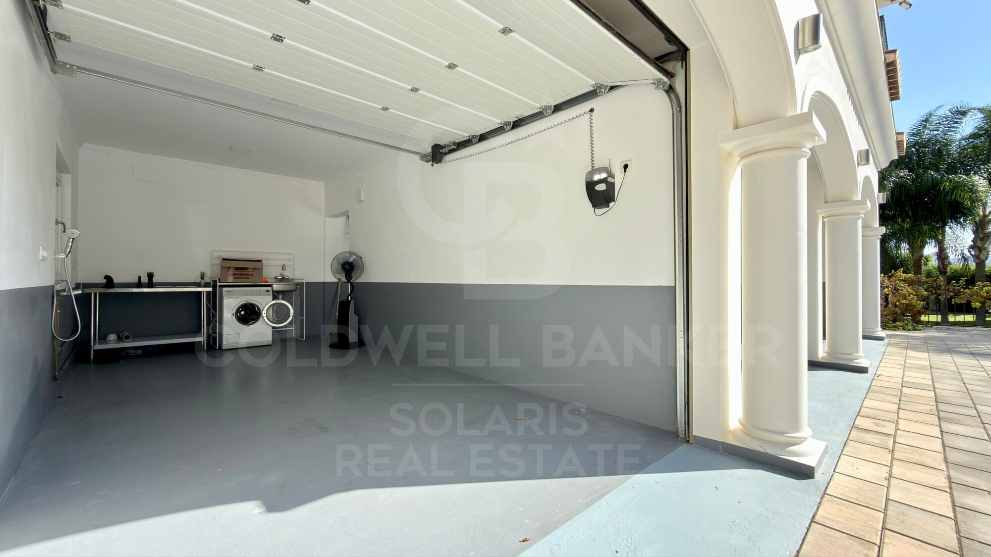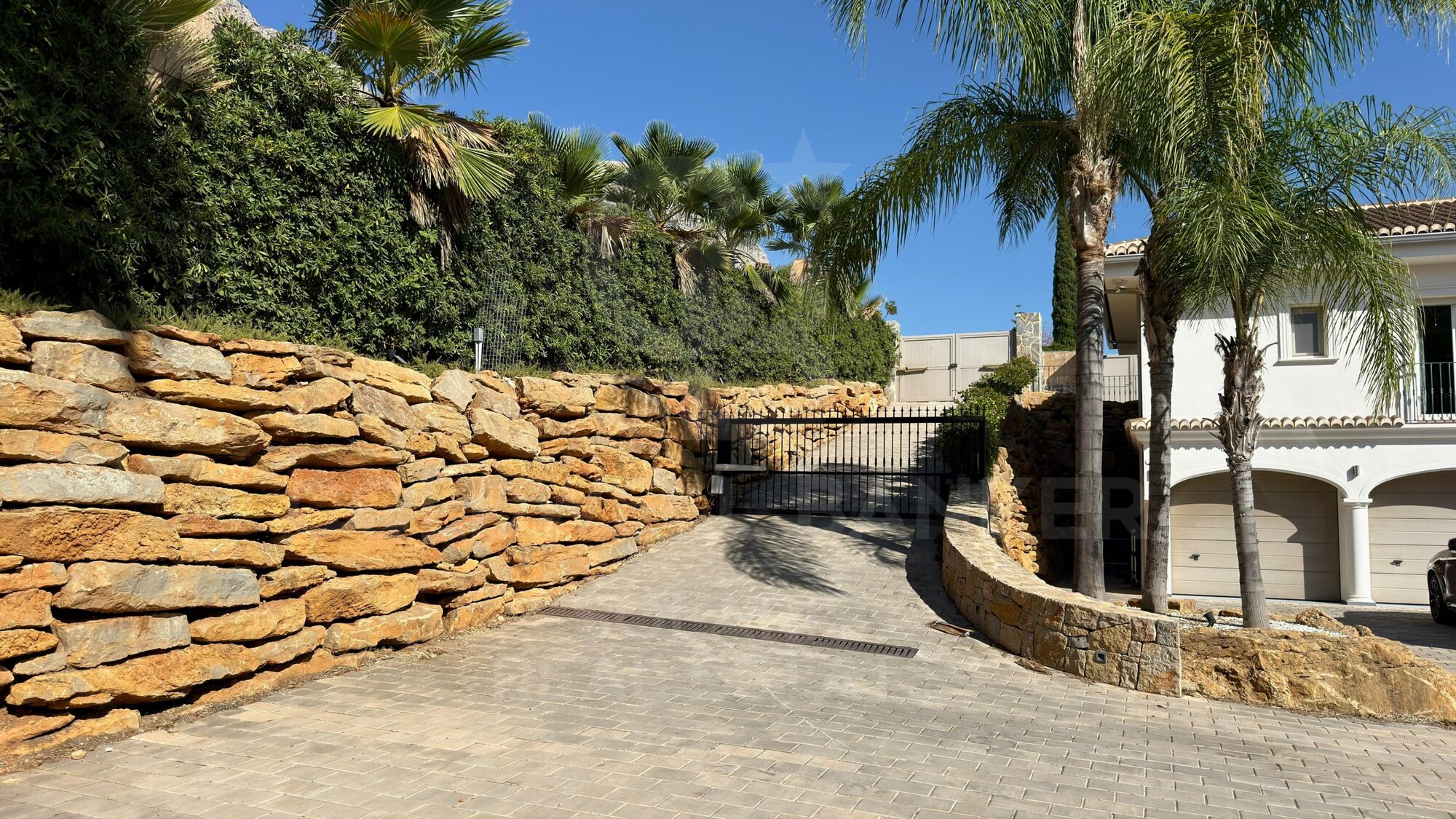 Die Villa ist über zwei automatische Türen zu einer großen Haupthalle zugänglich. Der gesamte Umfang ist mit verstärkten Zäunen gesichert, die Privatsphäre und Sicherheit garantieren und zudem für Haustiere angepasst sind.