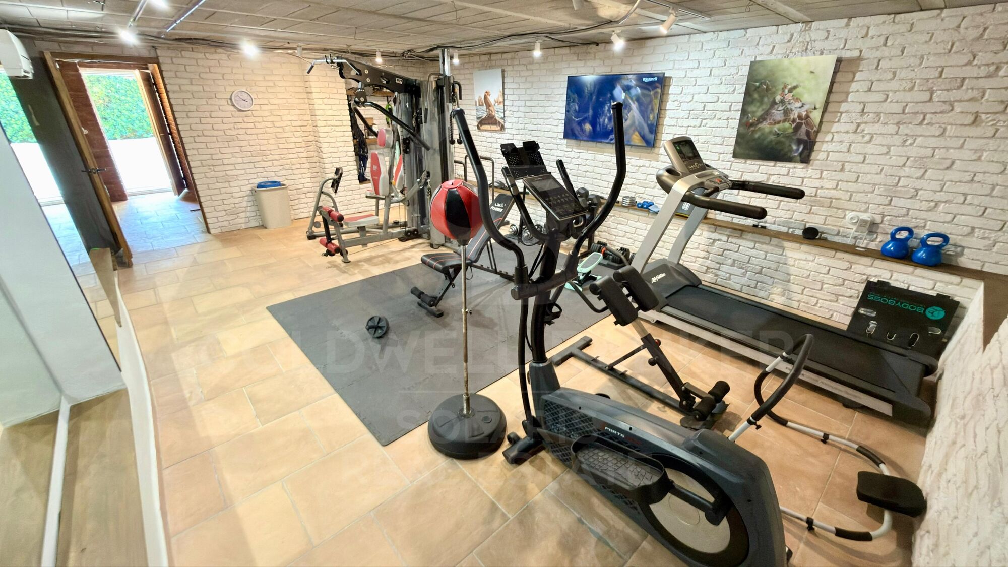 Das Erdgeschoss der Villa ist der Freizeit und dem Wohlbefinden gewidmet. Es verfügt über ein voll ausgestattetes Fitnessstudio für tägliche Workouts sowie ein Karaokestudio mit professionellem Soundsystem, Mikrofonen und einem großen Bildschirm - ein perfekter Raum für Unterhaltung mit Familie oder Freunden.