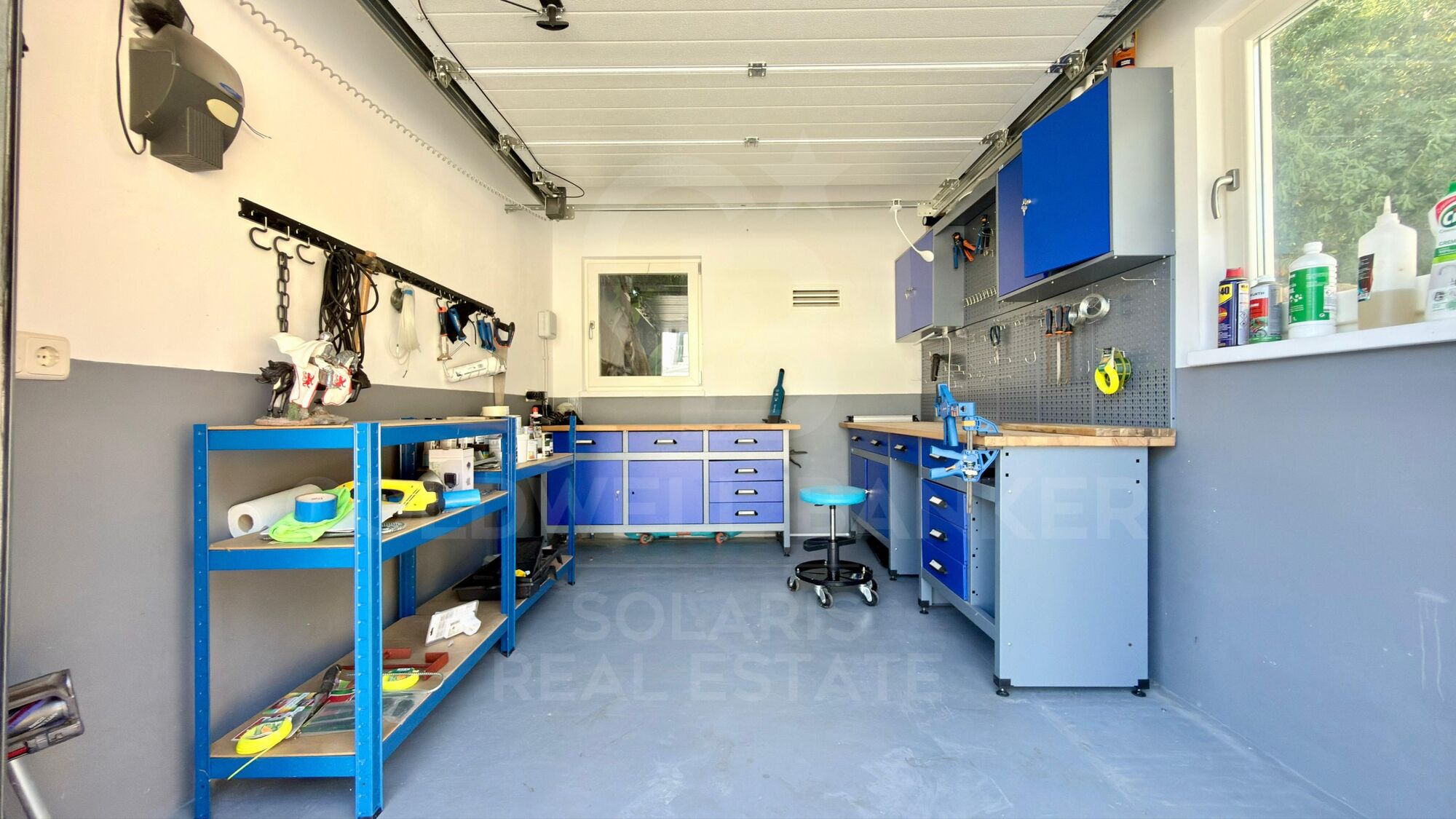 Die Garage mit Lagerraum ist mit einem Elektroladegerät ausgestattet, das maximalen modernen Komfort bietet. Für Tierliebhaber umfasst das Gelände ein Tierheim mit Reinigungsbereich, überdachter Freifläche und eine 36 m² große Werkstatt. Das Grundstück bietet ausreichend Parkplätze für 3-5 Autos, was die Funktionalität des Anwesens komplettiert.