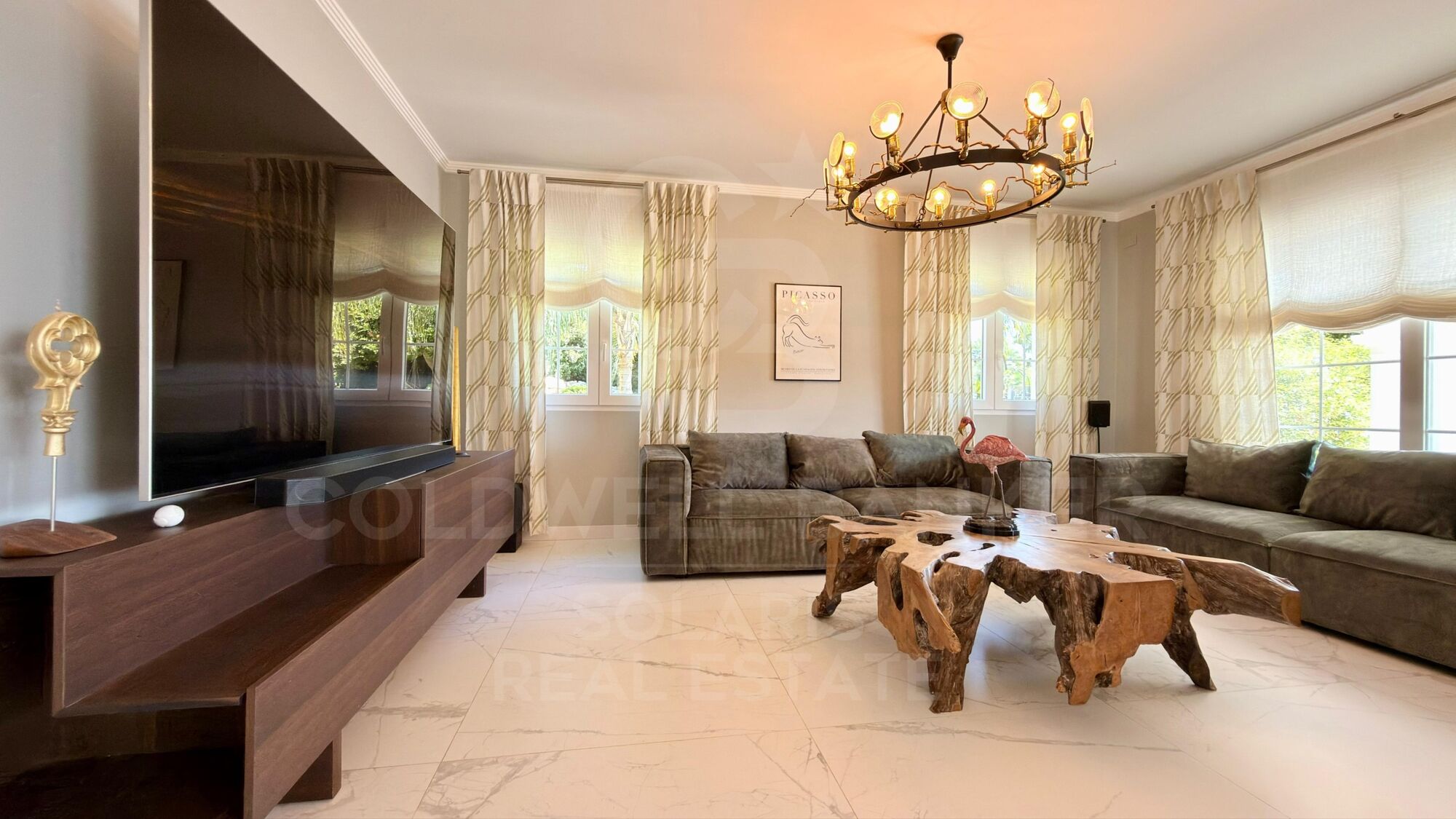 Die Villa ist mit den neuesten Fortschritten in Komfort und Technologie ausgestattet und sorgt für ein luxuriöses Wohnerlebnis. Es bietet klimatisierte Klimaanlagen (heiß und kalt) und Fußbodenheizung in der gesamten Immobilie sowie doppelt verglaste Fenster mit elektrischen Fensterläden für Effizienz und Komfort.