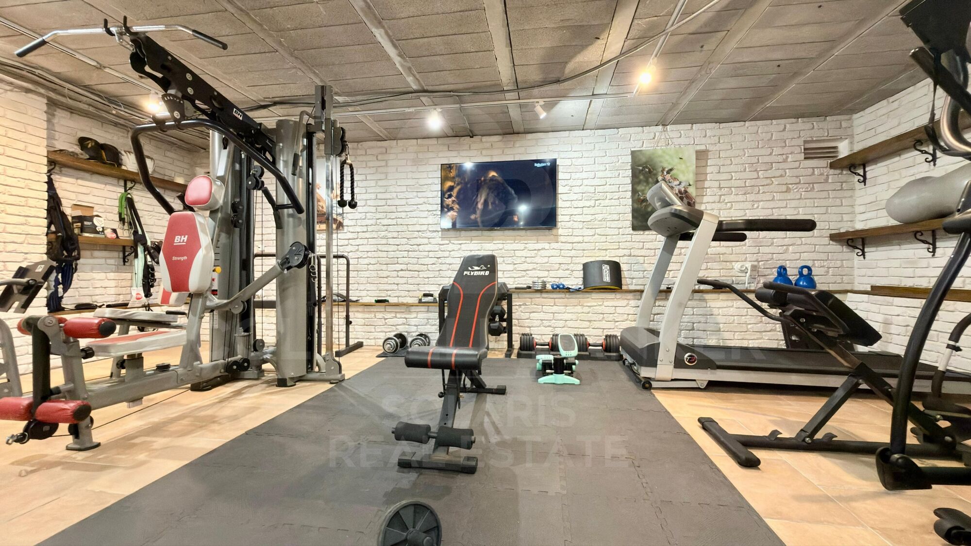 Das Erdgeschoss der Villa ist der Freizeit und dem Wohlbefinden gewidmet. Es verfügt über ein voll ausgestattetes Fitnessstudio für tägliche Workouts sowie ein Karaokestudio mit professionellem Soundsystem, Mikrofonen und einem großen Bildschirm - ein perfekter Raum für Unterhaltung mit Familie oder Freunden.