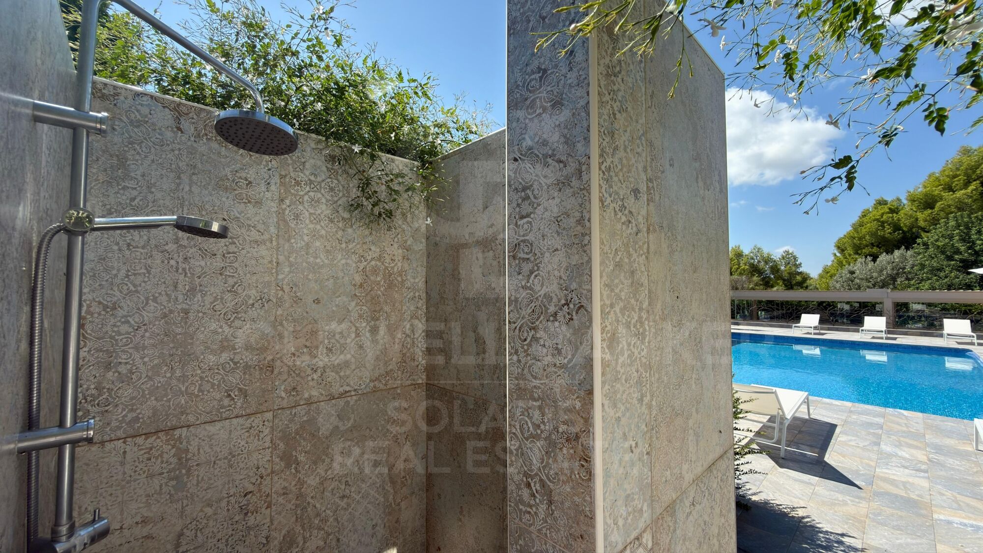 Die Villa bietet mehrere Außenbereiche, die sowohl zur Entspannung als auch zur Unterhaltung konzipiert sind. Eine voll ausgestattete Sommerküche mit automatischem Dach und Grill macht ihn ideal für das Essen im Freien.
