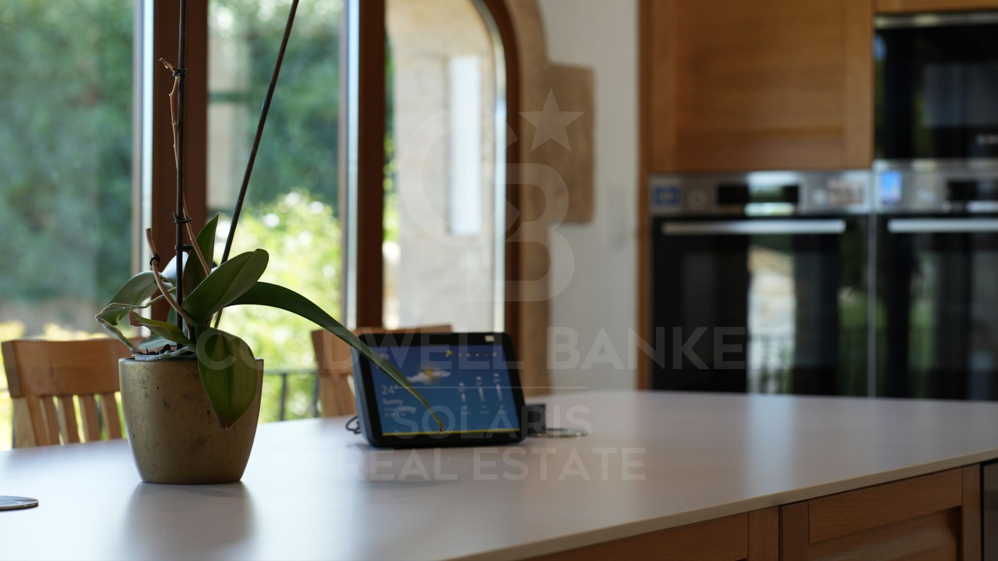 Das Anwesen wurde komplett renoviert, einschließlich neuer Fenster und Türen, kompletter Elektro- und Sanitärinstallationen, Fußbodenheizung, Klimaanlage warm/kalt sowie Designerküche und Badezimmer. Es verfügt auch über eine elegante überdachte Terrasse (Naya), eine Doppelgarage mit automatischen Türen und schöne Gärten.