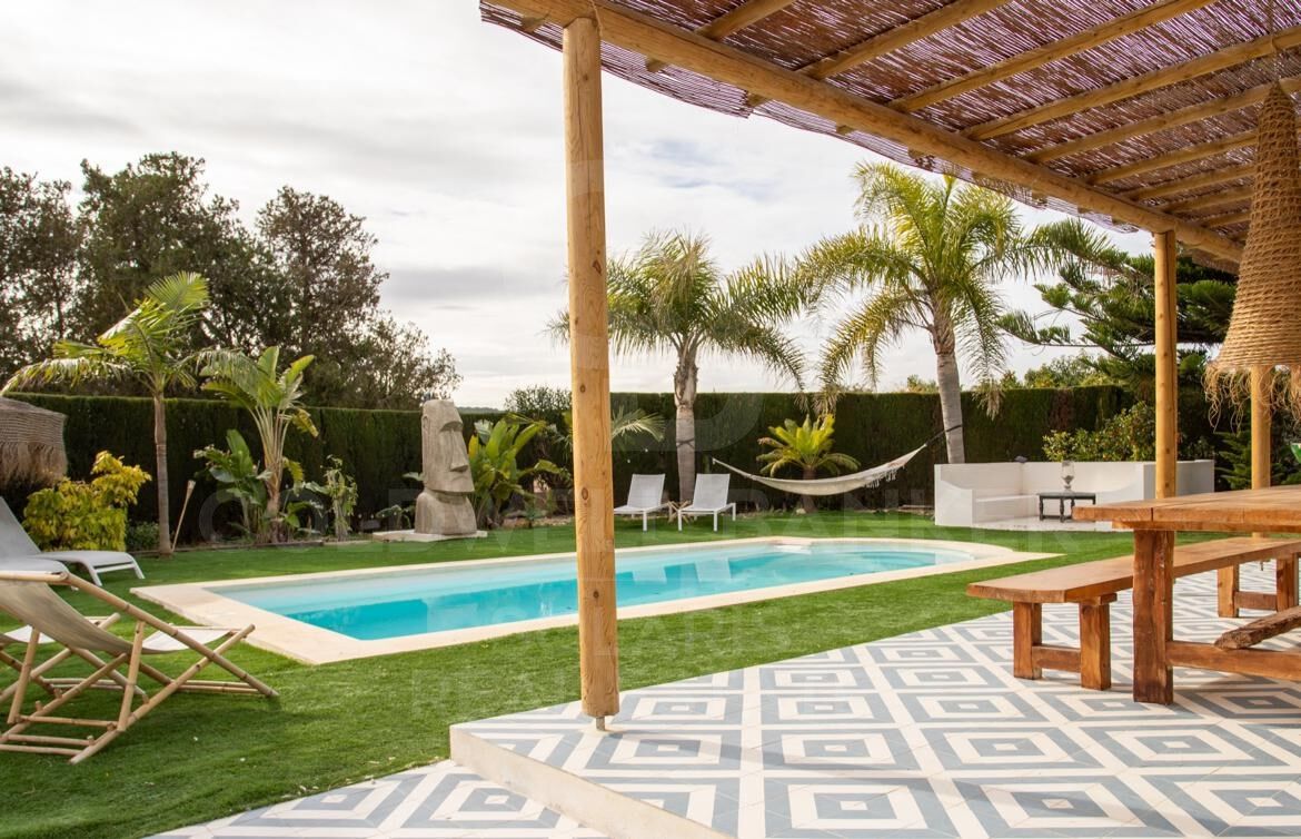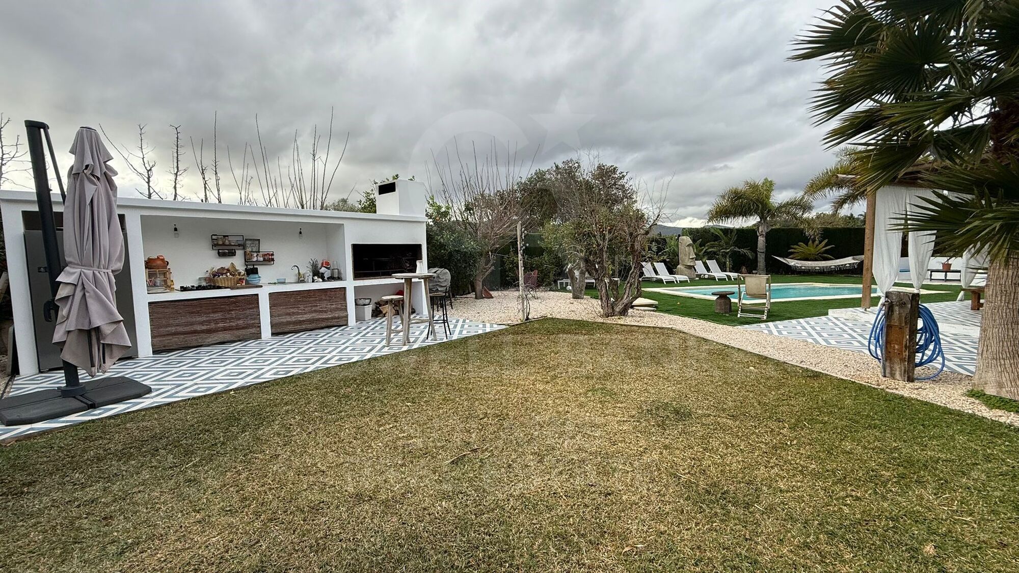 Diese Villa bietet geräumige Außenbereiche, darunter eine Terrasse mit Blick auf den Garten, einen Entspannungsbereich im privaten Innenhof, um Momente der Entspannung zu genießen, einen gemütlichen Wohnbereich mit einem Flachbild-Sat-TV, eine Küche im Grillstil im Freien, um Mahlzeiten im Freien und Zusammenkünfte mit Freunden und Familie zu genießen. Ein atemberaubender Außenpool und ein üppiger Garten verleihen dem Ambiente einen Hauch von Gelassenheit. Darüber hinaus finden Sie ein eigenes Bad mit einer Dusche. Es gibt auch eine voll ausgestattete Küche mit modernen Geräten wie einem Kühlschrank, einem Geschirrspüler, einem Backofen, einer Mikrowelle, einem Herd, einer Kaffeemaschine und einem Wasserkocher.