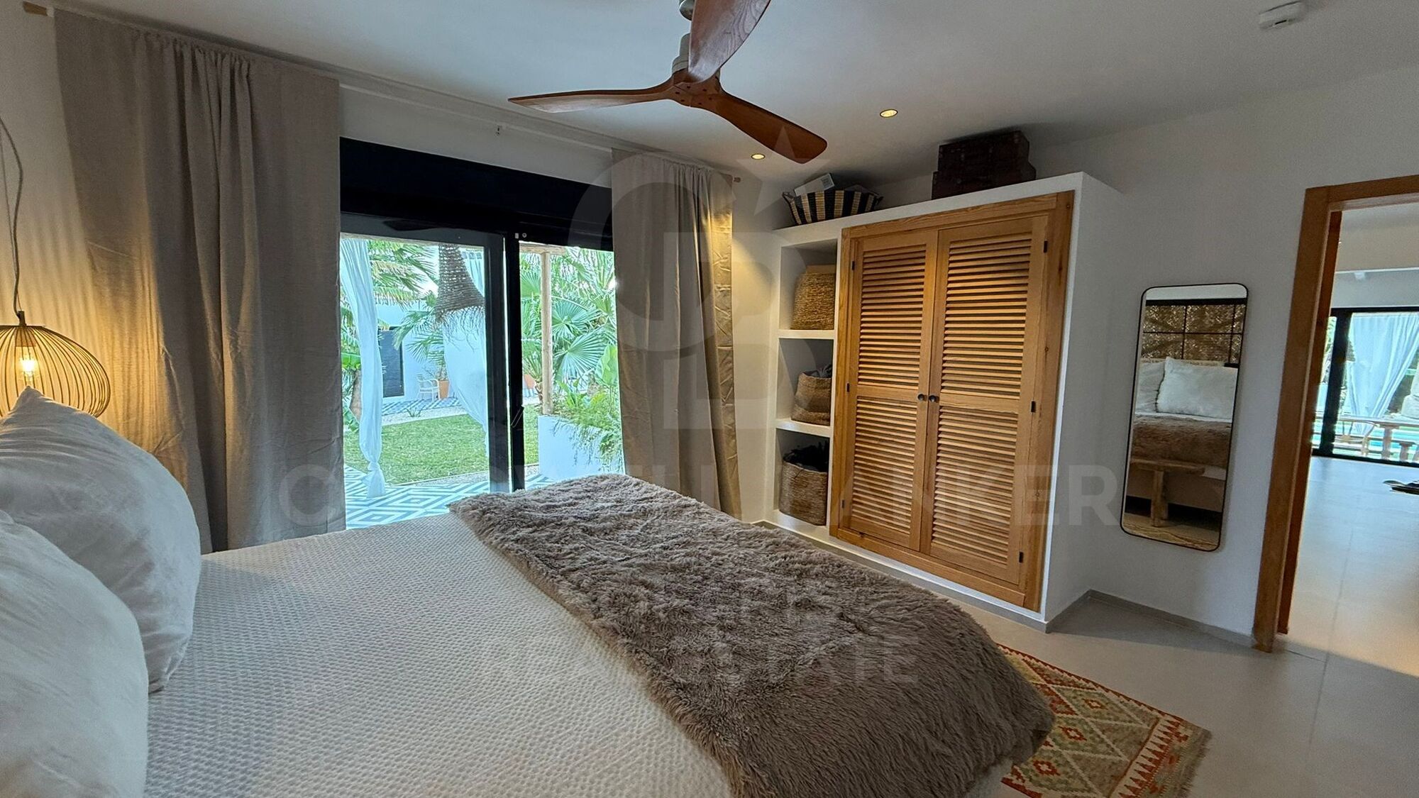 Die Zimmer sind wie folgt aufgeteilt: Das Haupthaus, in dem sich zwei Schlafzimmer und zwei Badezimmer, Küche und Wohnzimmer befinden. Das Hauptschlafzimmer verfügt über eine private Terrasse und ein geräumiges eigenes Bad mit einer tiefen Badewanne und einer ebenerdigen Dusche.