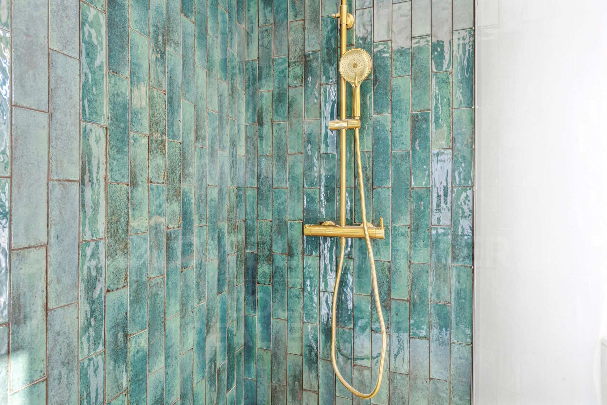 Unter der Treppe befindet sich ein Technikschrank mit einem Heizkessel und einem Anschlusspunkt für zukünftige Solaranlagen, die das nachhaltige Konzept der Villa unterstreichen.
