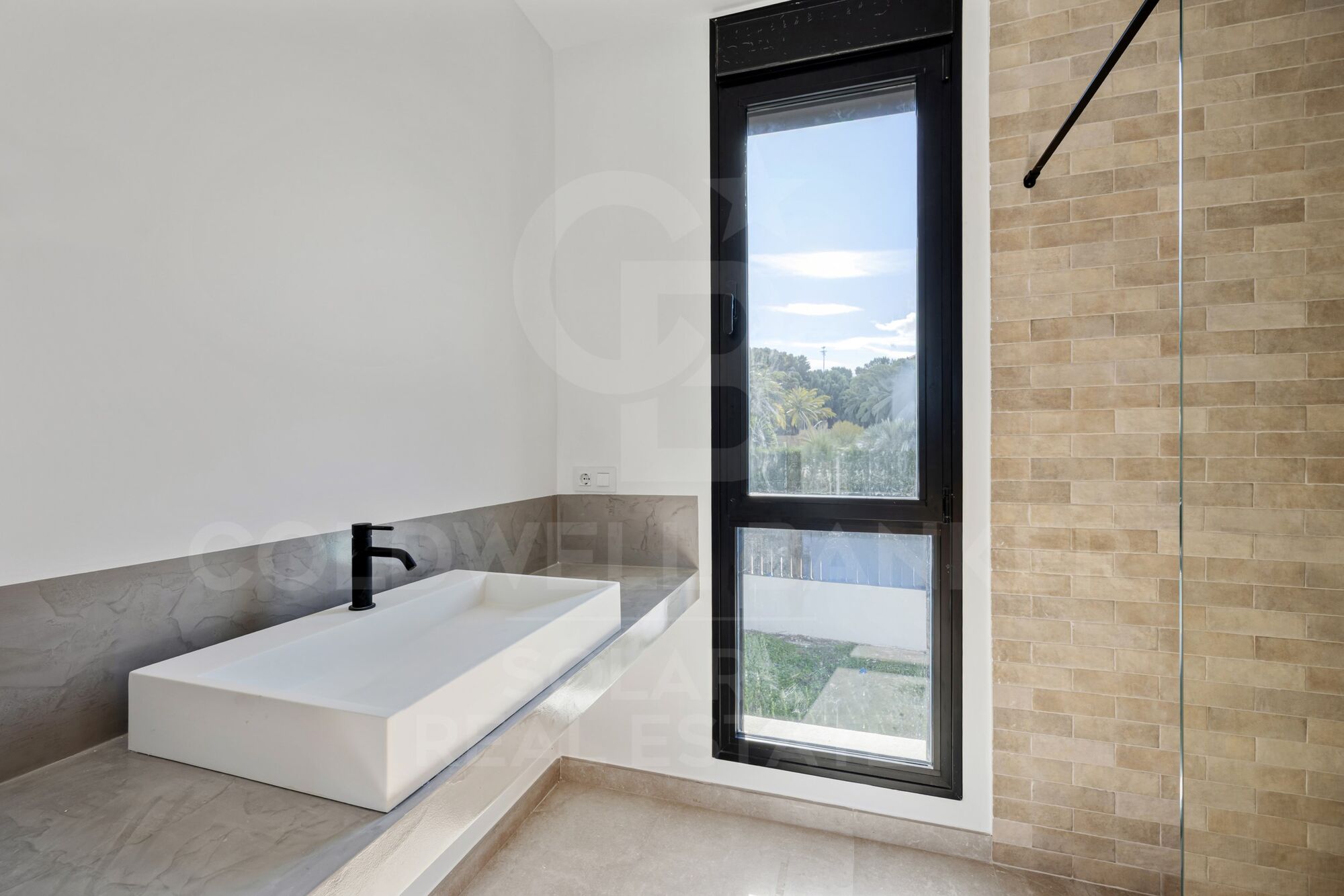 Diese brandneue Passivvilla in der Wohngegend von Piver, Jávea, kombiniert perfekt modernste Energieeffizienz mit eleganter mediterraner Architektur. Dieses moderne Haus wurde für ein nachhaltiges Leben konzipiert und bietet 3 Schlafzimmer (Potenzial 4), 3 Badezimmer und ein Gäste-WC, die alle mit hochwertigen Materialien und durchdachtem Design gefertigt sind.