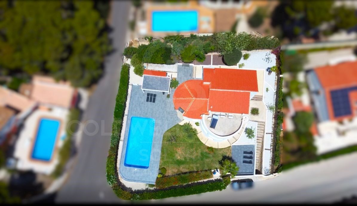 Die untere Ebene der Villa bietet eine separate Etage, ideal für Gäste oder Familien, mit eigener Küche und Wohnzimmer. Hier finden Sie drei sehr komfortable Doppelzimmer und ein modernes Badezimmer. Von diesem Bereich aus gelangen Sie direkt in den Garten und auf die Poolterrasse. Die Poolterrasse ist ein prominenter Ort mit viel Platz zum Entspannen und Genießen des mediterranen Klimas. Die Sommerküche, die mit einem Induktionskochfeld ausgestattet ist, eignet sich perfekt zum Grillen und Essen im Freien. Der kürzlich renovierte, 11 x 6 Meter große Pool ist von Liegestühlen umgeben und verfügt über eine eigene Außendusche. Der pflegeleichte Garten kombiniert Gräser, Kies und mediterrane Pflanzen und bietet eine Auswahl an Obstbäumen und Hecken, die Privatsphäre bieten. Es gibt auch einen separaten Hauswirtschaftsraum, viel Stauraum, eine Garage und Sonnenkollektoren zum Erhitzen von Wasser. Diese vielseitige Villa mit ihrer unabhängigen Wohnung und dem fantastischen Meerblick eignet sich sowohl als Familienresidenz als auch für einen unvergesslichen Urlaub.