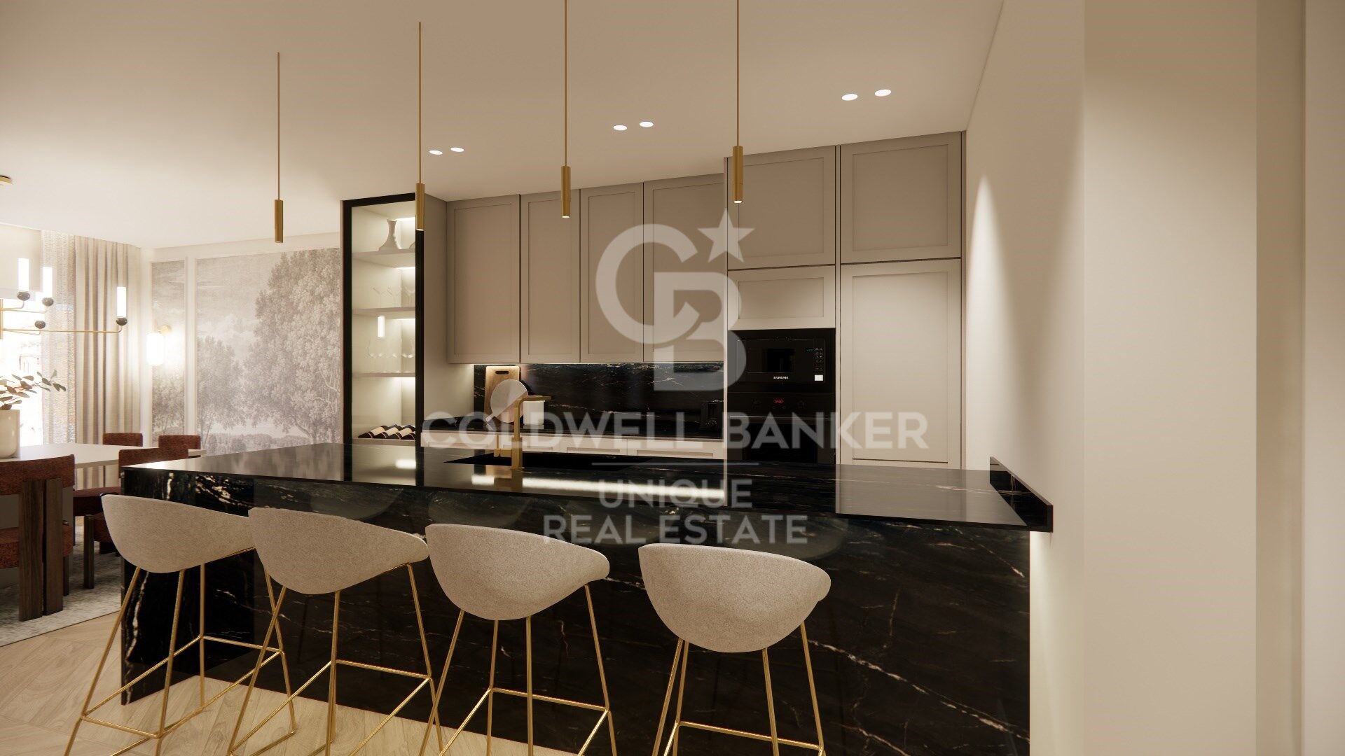 Sie befindet sich im sechsten Stock und verfügt über eine Wohnfläche von 180 m², die sich auf drei Schlafzimmer, drei voll ausgestattete Badezimmer und ein Gäste-WC verteilt.