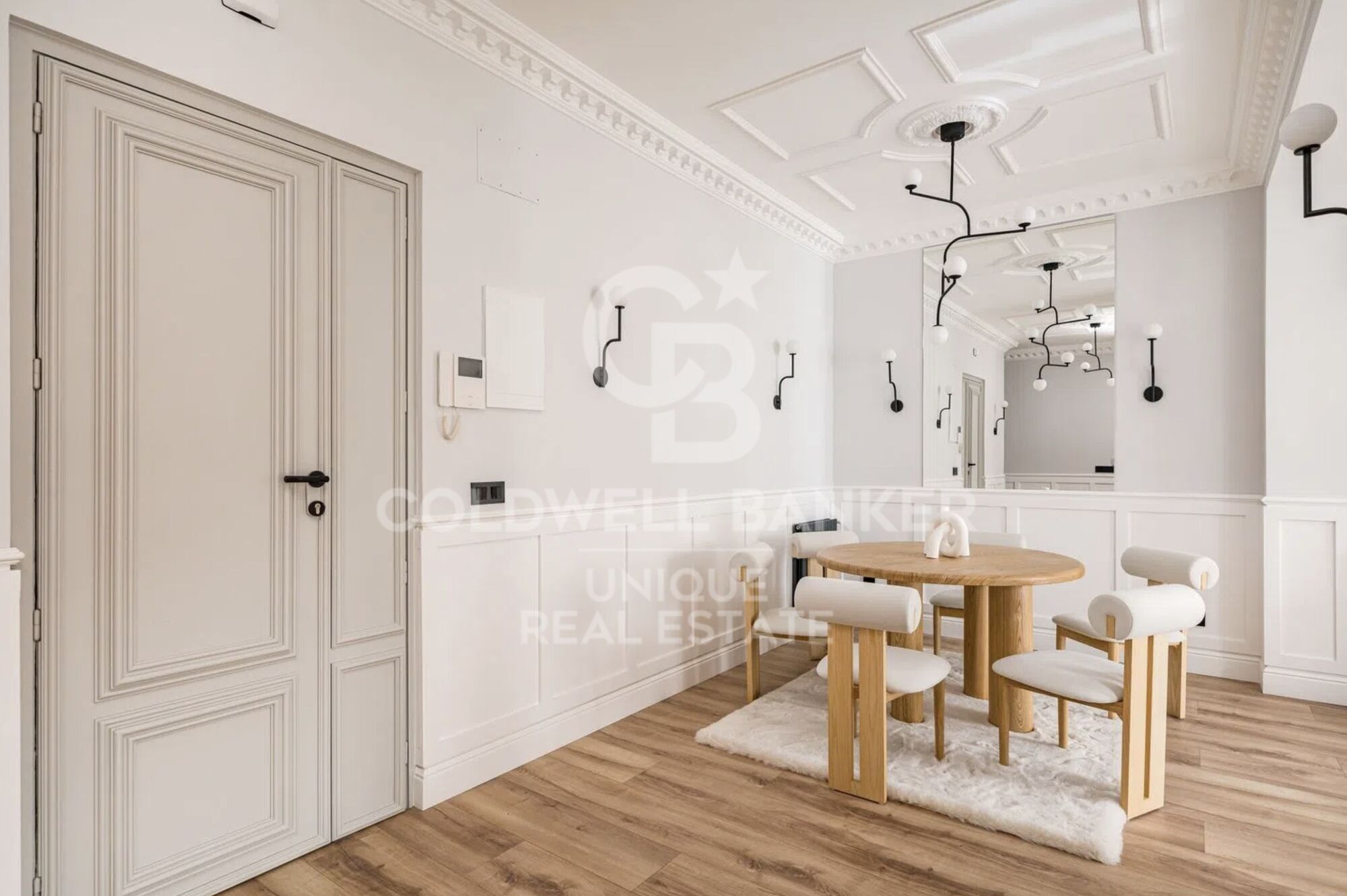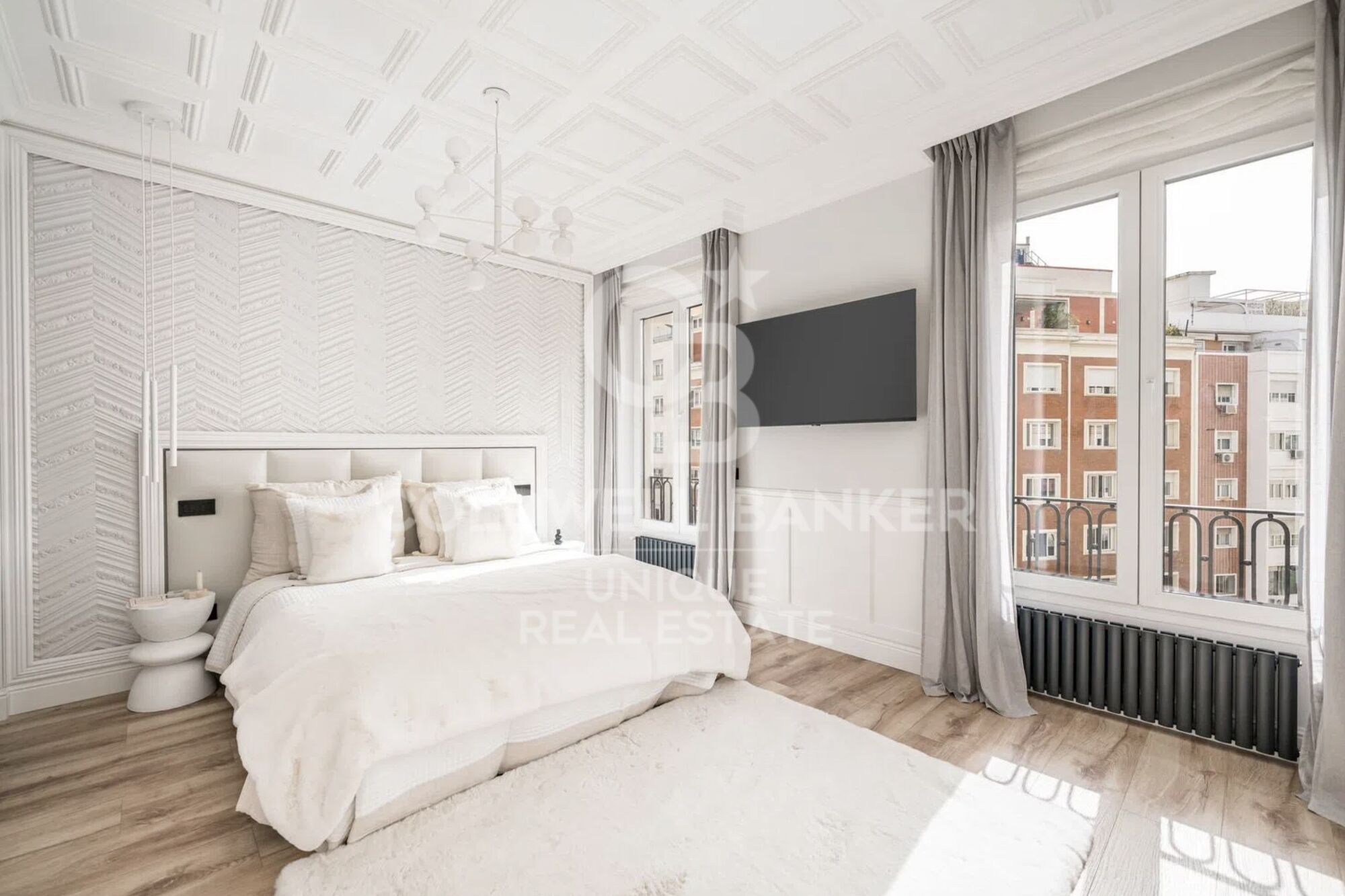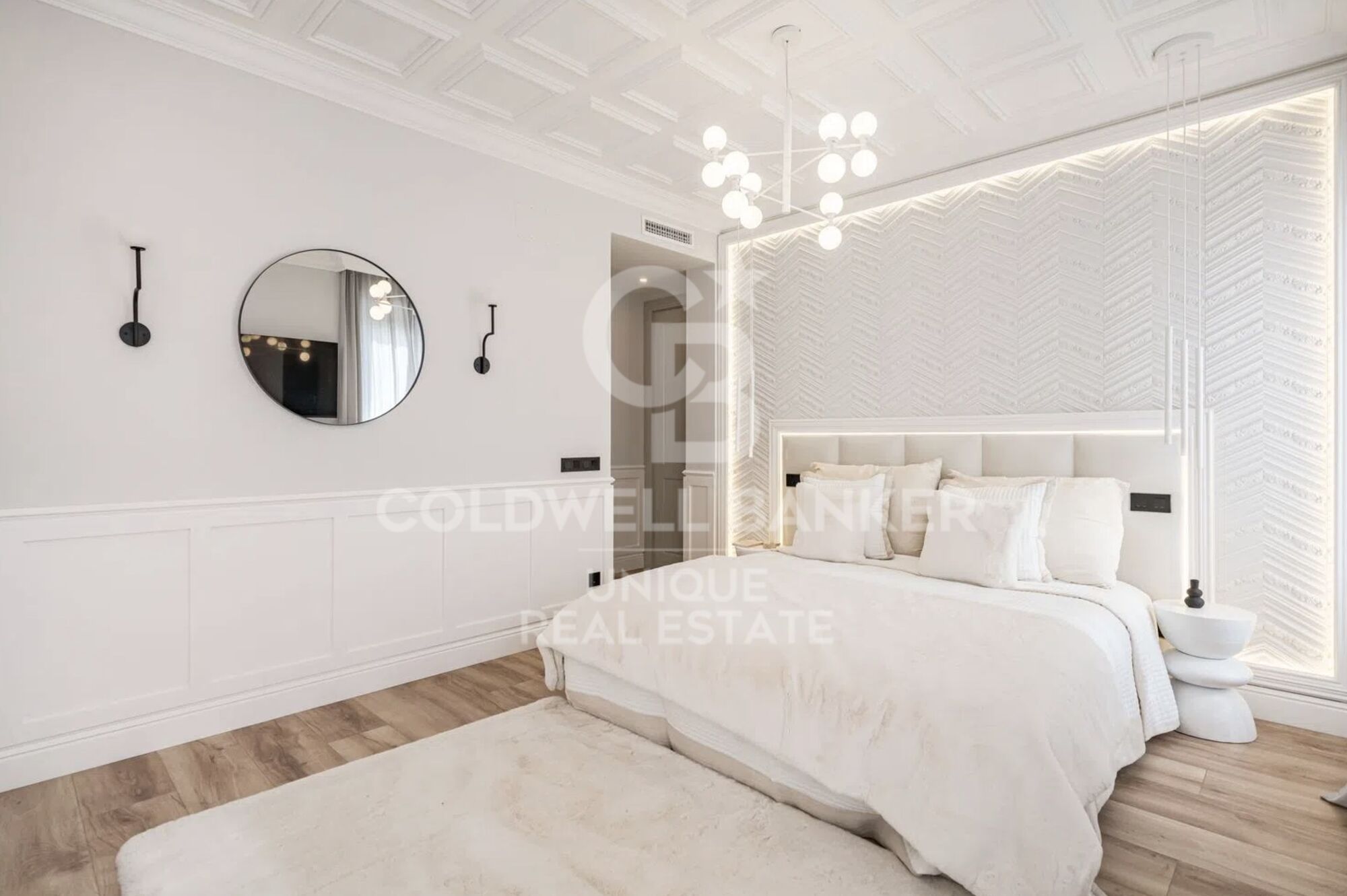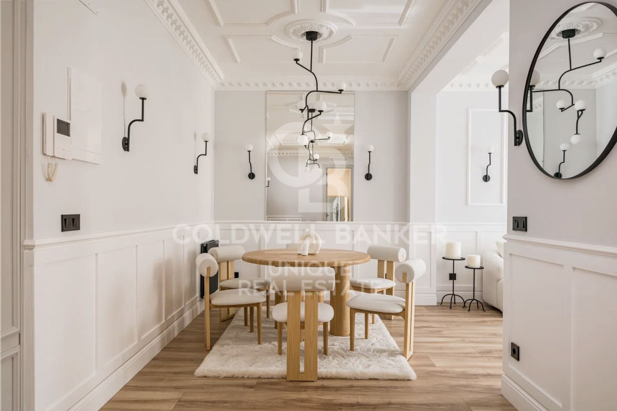 Coldwell Banker Unique präsentiert dieses prächtige Haus in einem klassischen Gebäude mit einer ruhigen und exklusiven Nachbarschaft, ideal für alle, die nach Eleganz, Privatsphäre und Komfort in einem der begehrtesten Gegenden Madrids suchen.