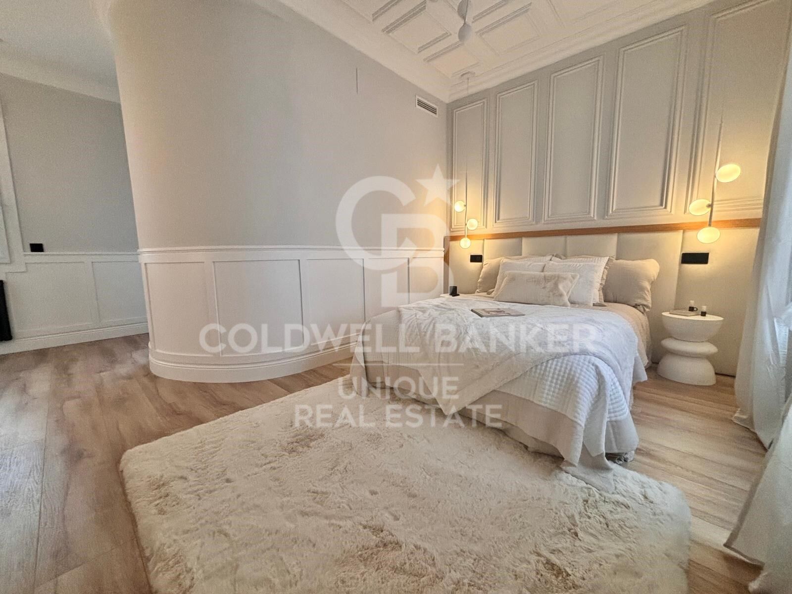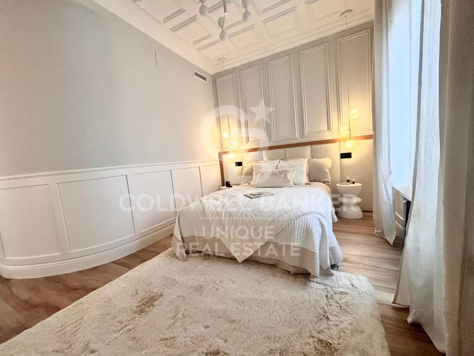 Coldwell Banker Unique präsentiert ein prächtiges Anwesen in einem imposanten klassischen Gebäude aus den 1920er Jahren, in dem der Charme historischer Architektur mit dem Komfort großzügiger, sorgfältig verteilter Räume vereint wird. Das Gebäude zeichnet sich durch seine elegante Fassade, sein repräsentatives Portal und einen ikonischen Käfigaufzug aus, der seinen einzigartigen und zeitlosen Charakter verstärkt. Das Haus beeindruckt von Anfang an dank der großzügigen Höhe seiner Decken, mehr als 3,20 Meter, die mit originalen Leisten dekoriert sind, die Besonderheit und ein unvergleichliches Gefühl von Geräumigkeit verleihen. Tageslicht und ungehinderte Sicht verstärken die Attraktivität jedes Raumes zusätzlich. In einer privilegierten Enklave des Viertels gelegen, stellt diese Immobilie eine außergewöhnliche Gelegenheit für diejenigen dar, die Tradition, Raum und Exklusivität in einem einzigen Haus suchen. Der Grundriss beginnt mit einer eleganten Eingangshalle, die Zugang zu einer Gästetoilette bietet und zu einem imposanten Wohnzimmer-Esszimmer führt, das dank seiner vier Balkone mit Blick auf die Straße in herrliches Licht getaucht ist. Der private Bereich besteht aus einem großen Hauptschlafzimmer, ausgestattet mit einem Umkleideraum und einem eigenen Badezimmer, das Komfort und Privatsphäre garantiert. Als nächstes gibt es ein zweites Schlafzimmer mit eigenem Bad, perfekt für Gäste oder Familien, sowie ein drittes Schlafzimmer, das von einem zusätzlichen voll ausgestatteten Badezimmer unterstützt wird. Die Küche, ein Bürotyp und für die tägliche Funktionalität konzipiert, bietet einen praktischen und gut organisierten Raum. Von dort aus erhalten Sie Zugang zum Servicebereich, in dem sich ein zusätzliches Schlafzimmer mit eigenem Bad befindet, was eine Vielseitigkeit bietet und dieses exklusive Zuhause perfekt abrundet. #ref:CBUQ1183