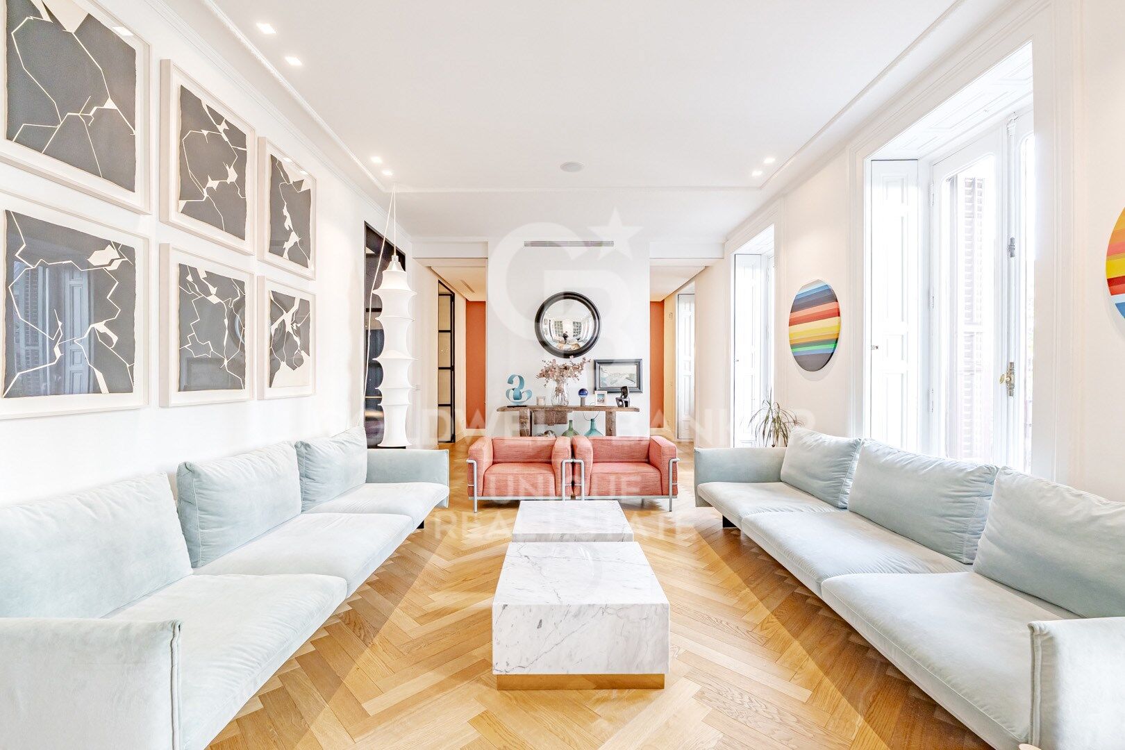 Dies ist eine wirklich einzigartige und exklusive Immobilie, eine Wohnung, die den Charme der klassischen Madrider Architektur perfekt mit einer umfassenden Renovierung des zeitgenössischen Designs verbindet, die mit Materialien und Oberflächen von höchster Qualität ausgeführt wurde.