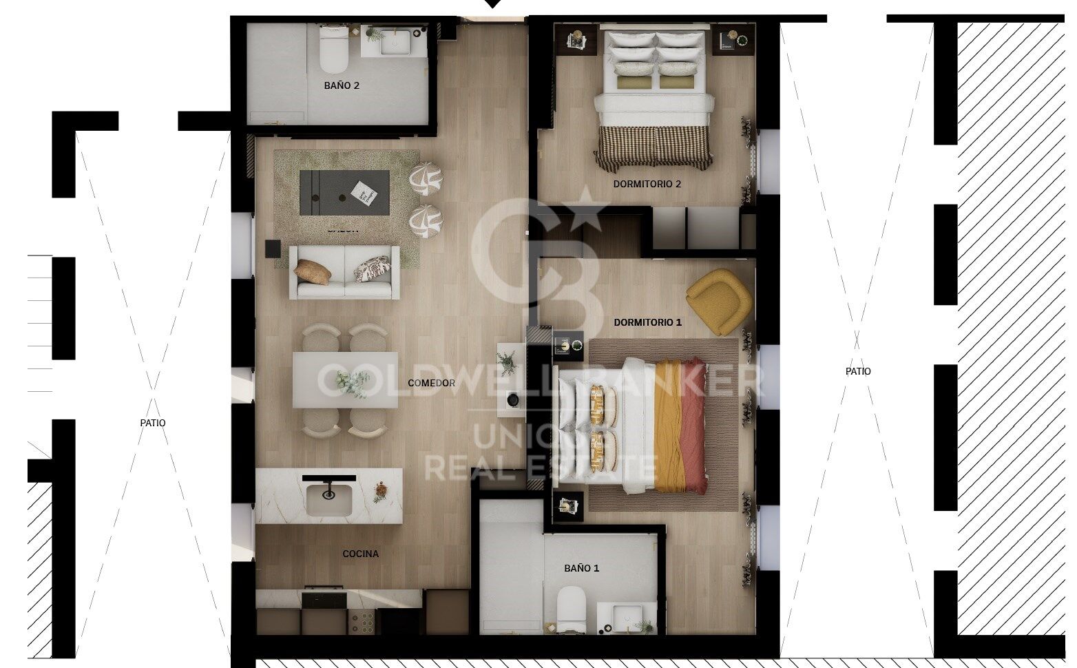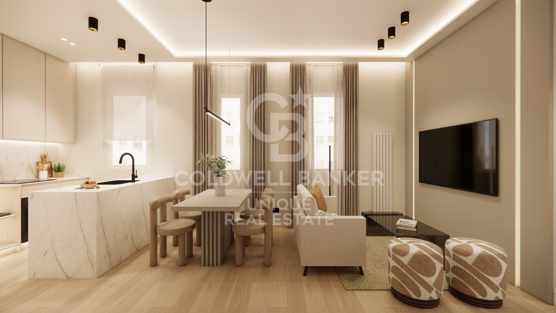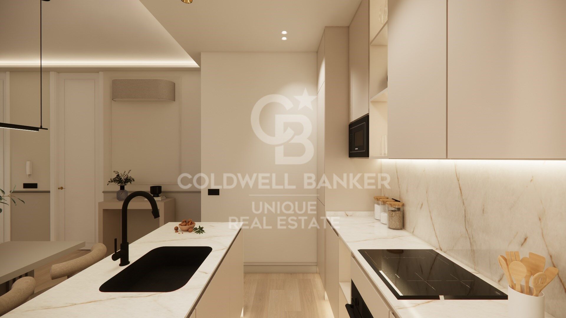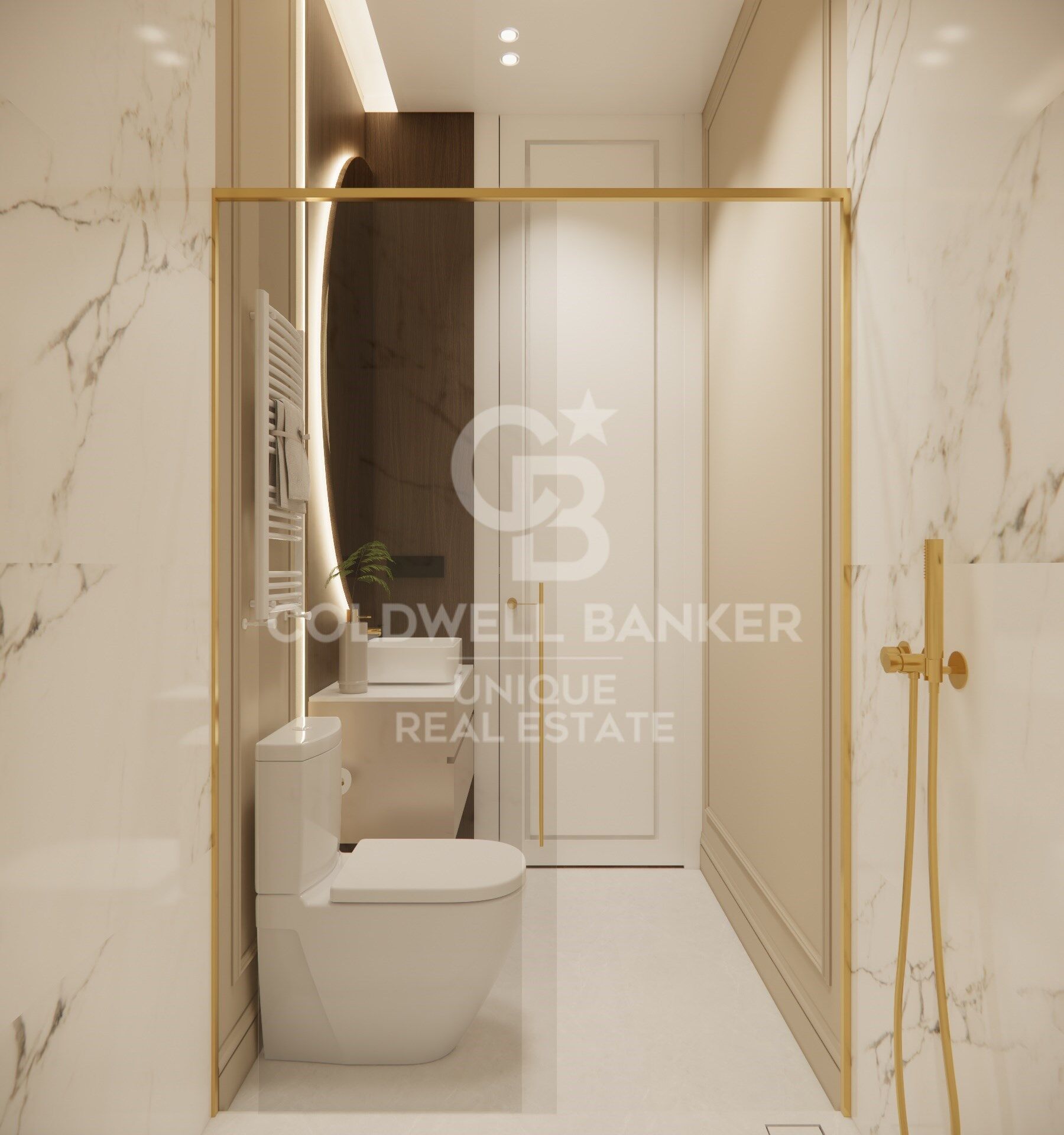 Die Wohnung wird über zwei Schlafzimmer und zwei voll ausgestattete Badezimmer verfügen, mit einem modernen und funktionalen Grundriss, der Raum optimal nutzt, ohne auf Komfort oder Stil zu verzichten. Die Renovierung umfasst die Verwendung von hochwertigen Materialien und zeitgemäßen Ausstattungen, die Eleganz und Helligkeit in jeden Bereich bringen.